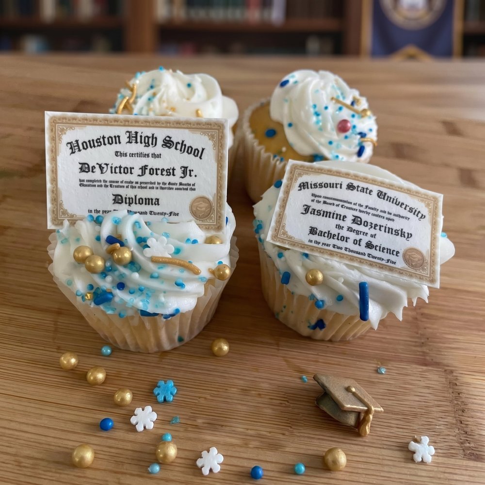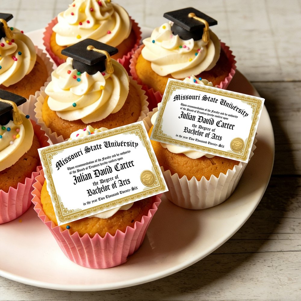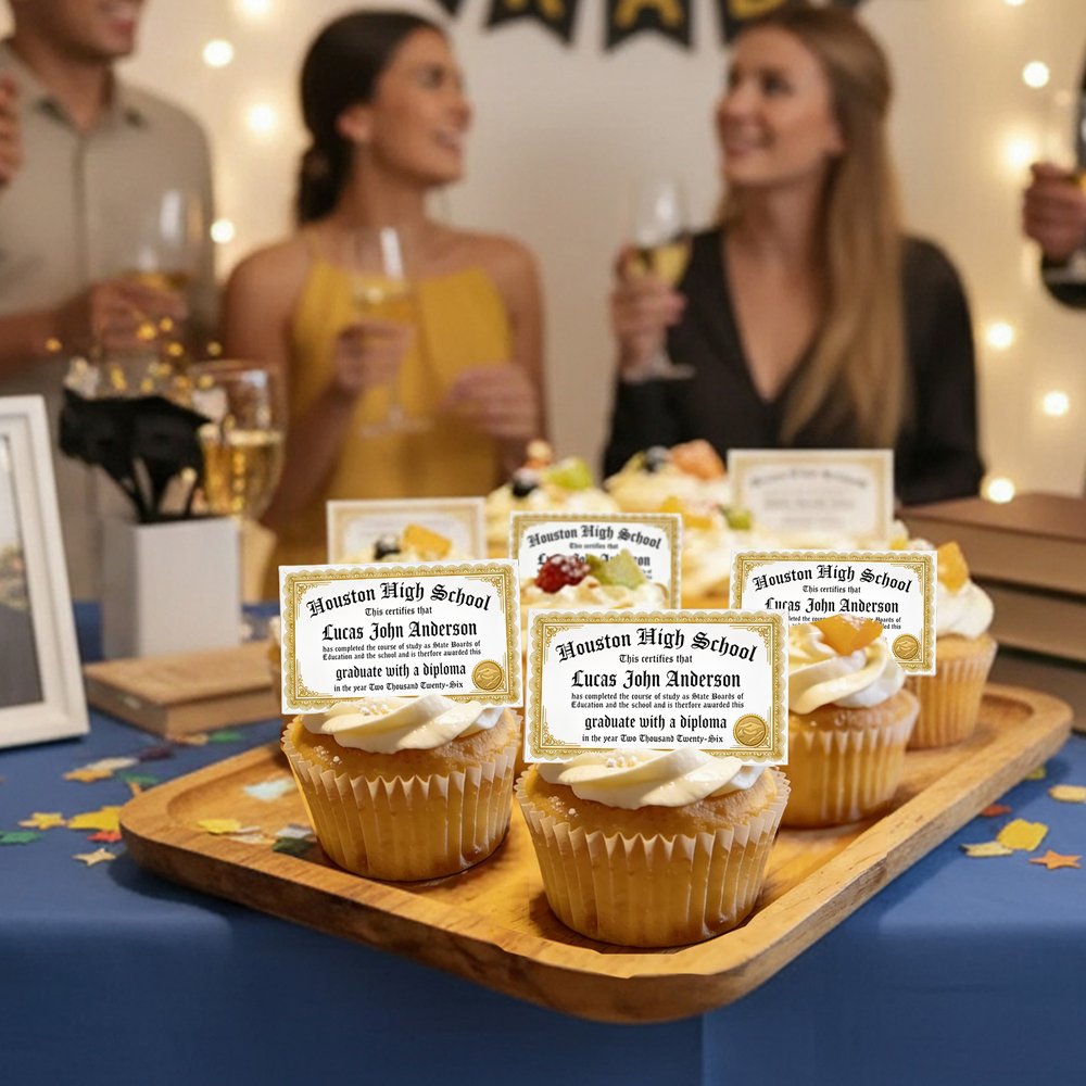 Make your graduation party unforgettable with Custom Diploma Cupcake Toppers! Order now to personalize your frosting sugar paper, creating sweet, edible keepsakes that celebrate the graduateās hard work and bright future.
