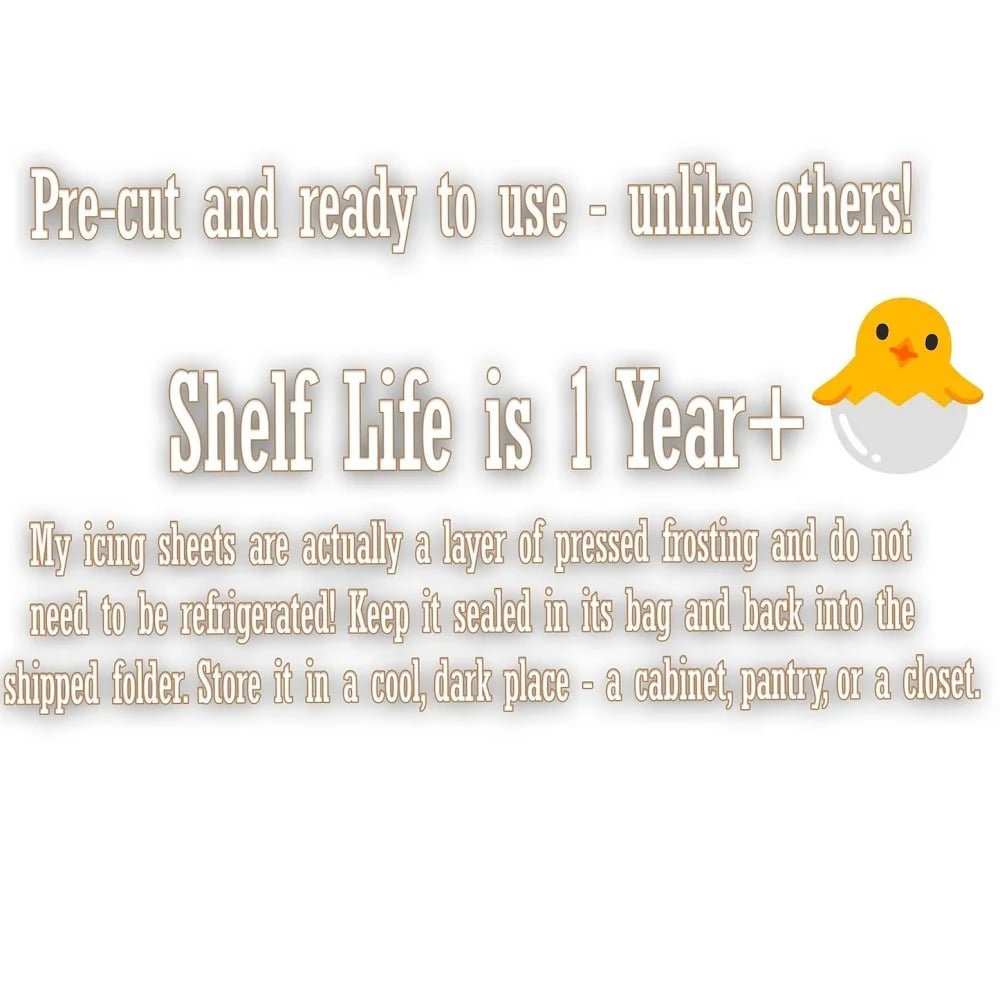 Crafted from high-quality edible frosting paper and food-safe edible ink, these toppers are both beautiful and delicious. The thin sugar-based paper adheres seamlessly to frosting, melts gently into the cake, and has a sweet, neutral taste that complements any dessert. Unlike other options, they are pre-cut for immediate use and boast a 1-year shelf life, staying flexible and intact in all climates. - Size: 2" x 1.25"
