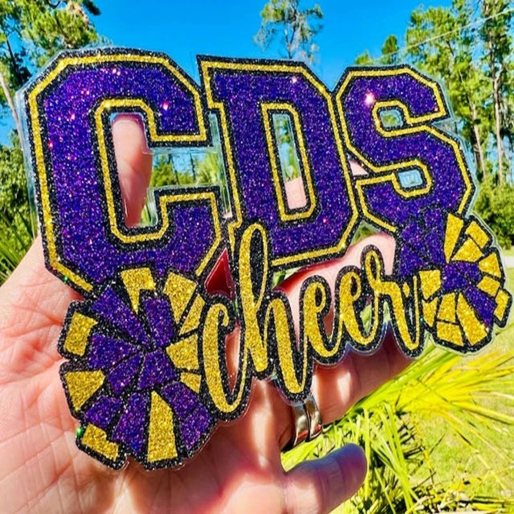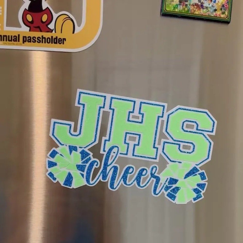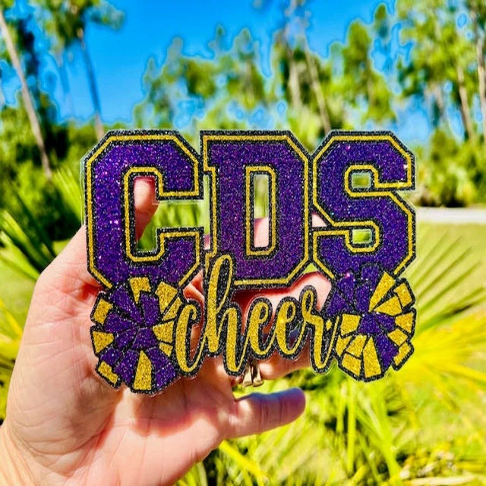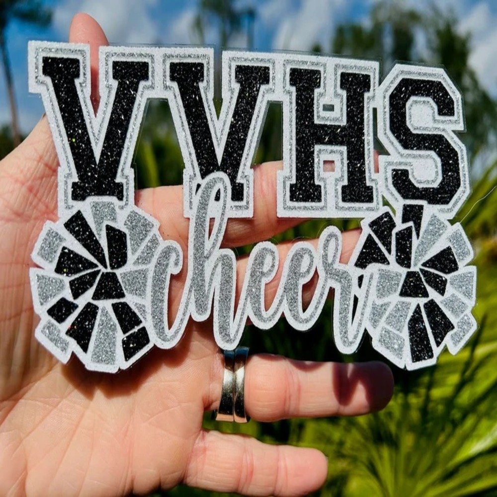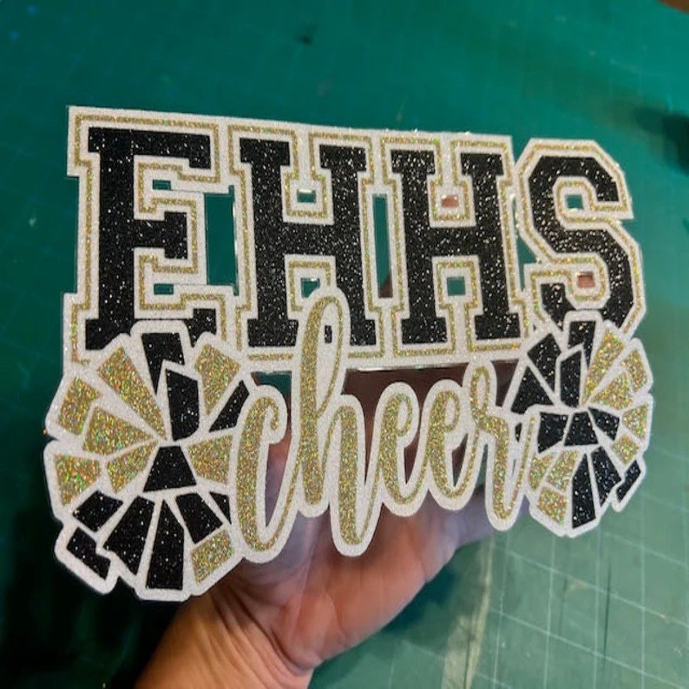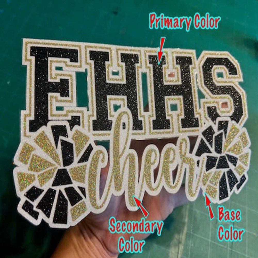 Cheer Glitter Stickers, Personalized Cheerleader High School Letters and Pom Poms, Stickers for Laptop Water Bottle Cups Tumblers