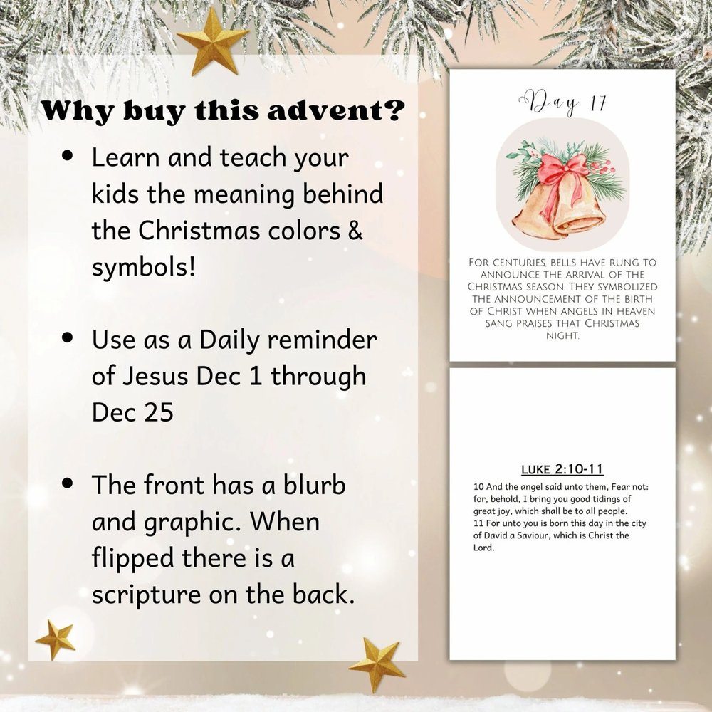 Christmas Symbols of Jesus Advent Calendar: Scripture Cards, Homeschool Kids Gift