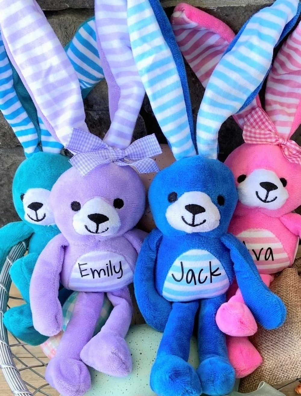 This plush bunny is the perfect addition to any Easter basket. Fill it with goodies or let it be a surprise on its own—either way, it’s sure to bring smiles and joy during the holiday celebrations. Whether for Easter, birthdays, or just because, this personalized bunny makes a wonderful gift for kids. It combines fun and personalization, making it a unique treasure they can hold onto for years to come.