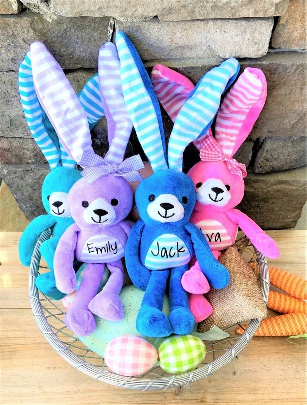 Crafted from high-quality materials, this plush bunny features a soft and cuddly design, making it perfect for hugging and snuggling. Customize it with your child's name for a personal touch that stands out. These funny bunnies are all ears! Kids can make a bunny’s ears stick straight up or can make them bend. No matter what the ears look like, these bunnies are adorable!