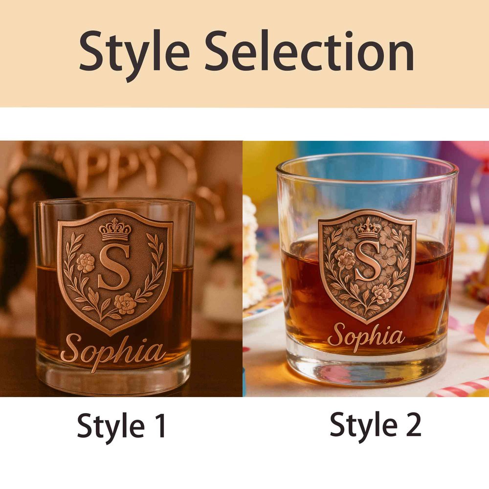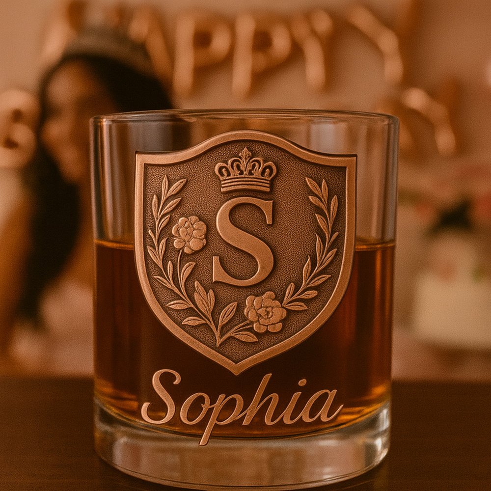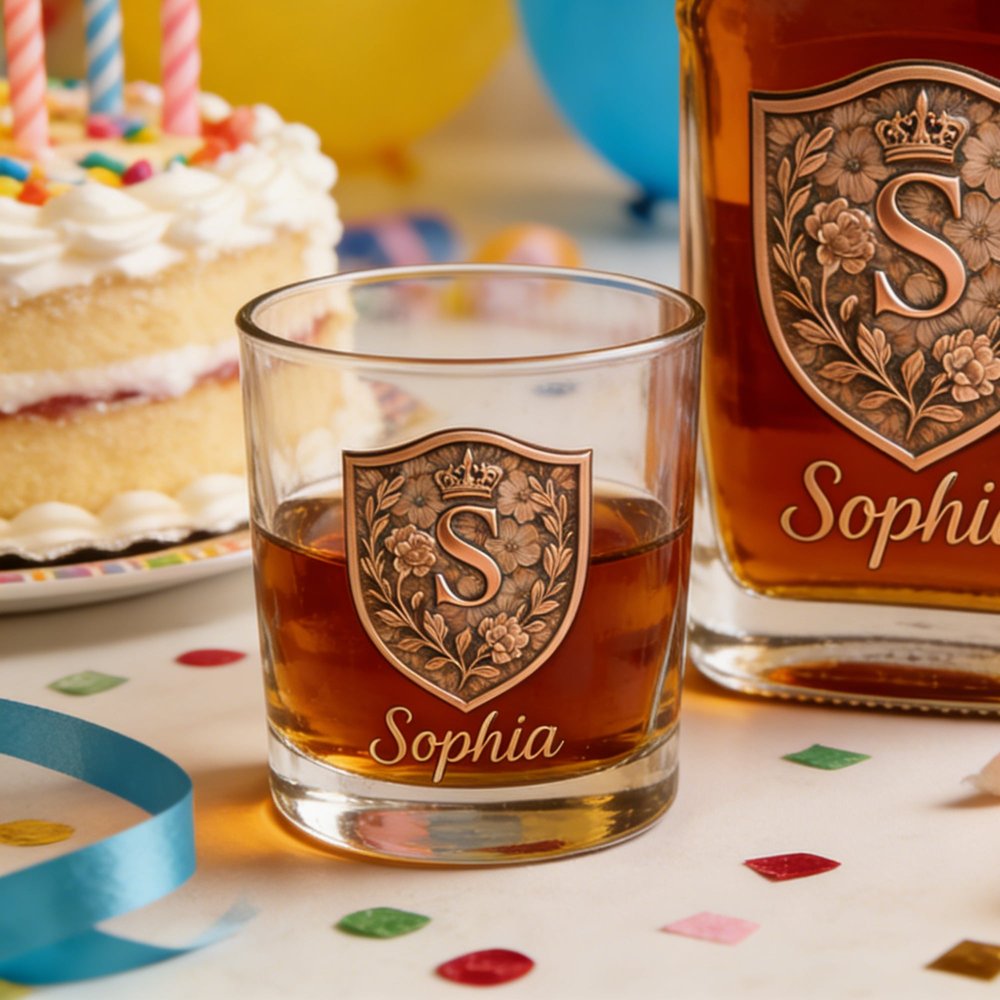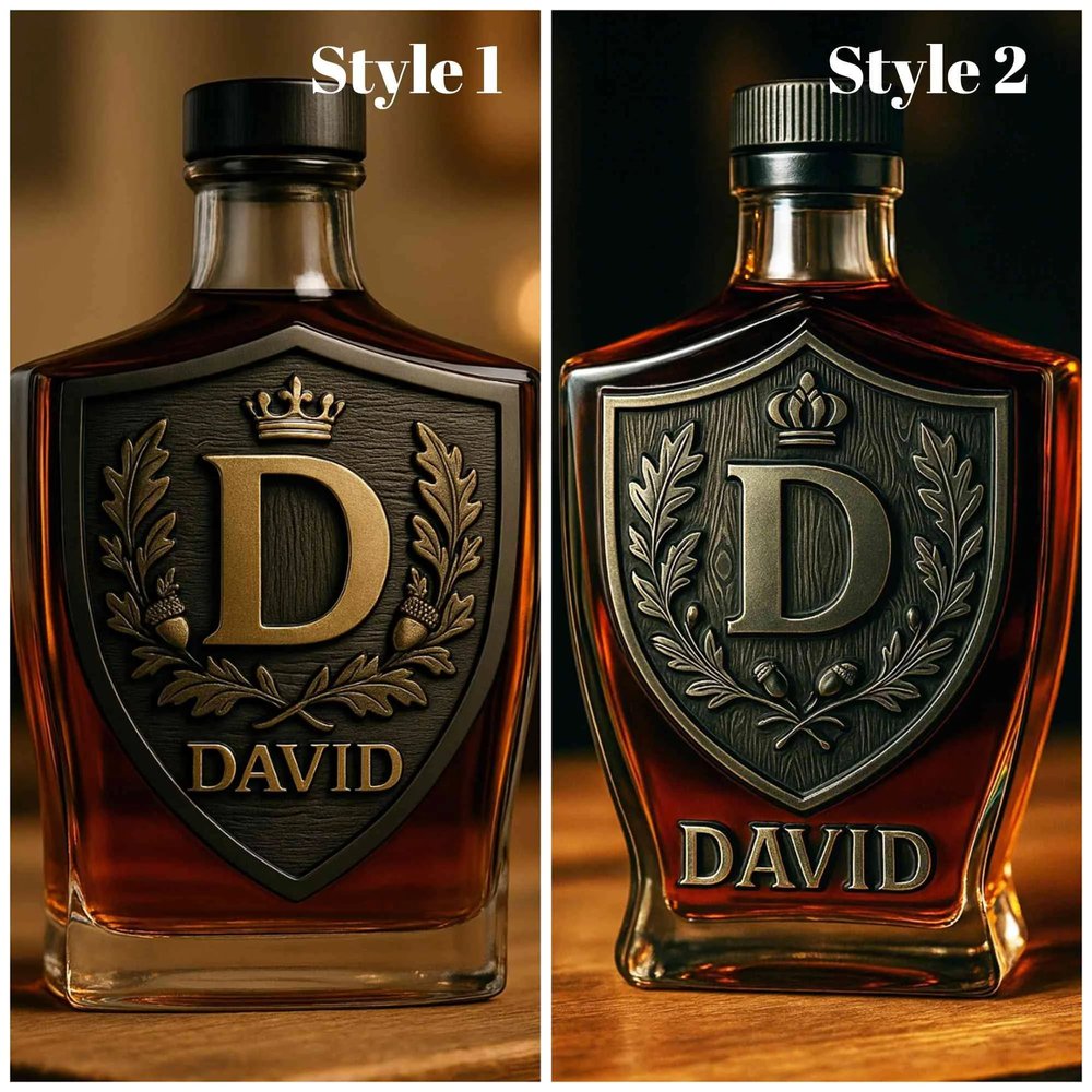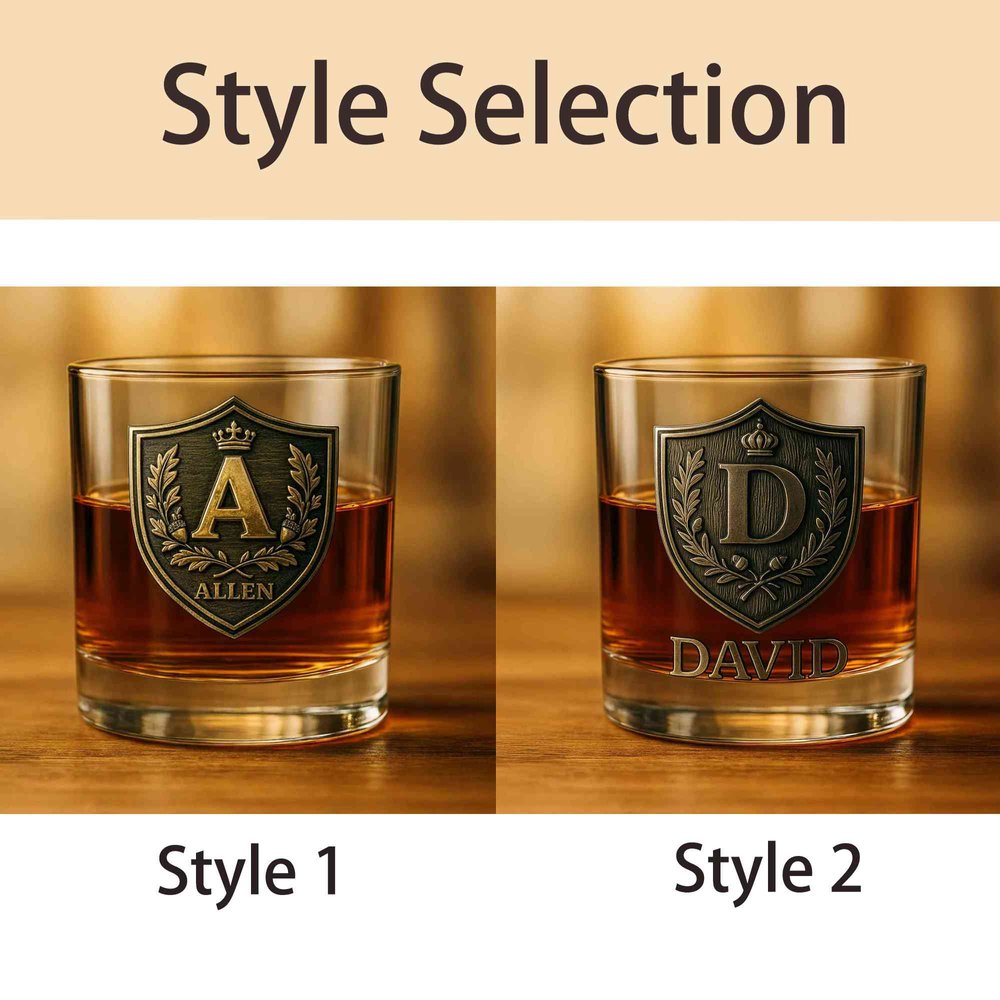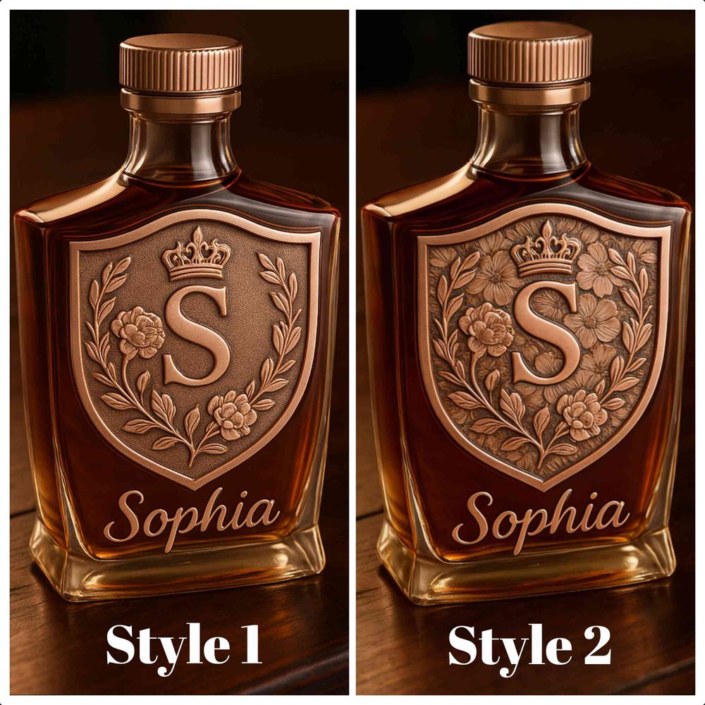 Discover a unique blend of quality and personalization with our Custom Whiskey Bottle and Glass Set. Each set features an intricately designed initial crest alongside personalized name engraving, allowing for a meaningful touch that reflects individual identity and emotional significance.