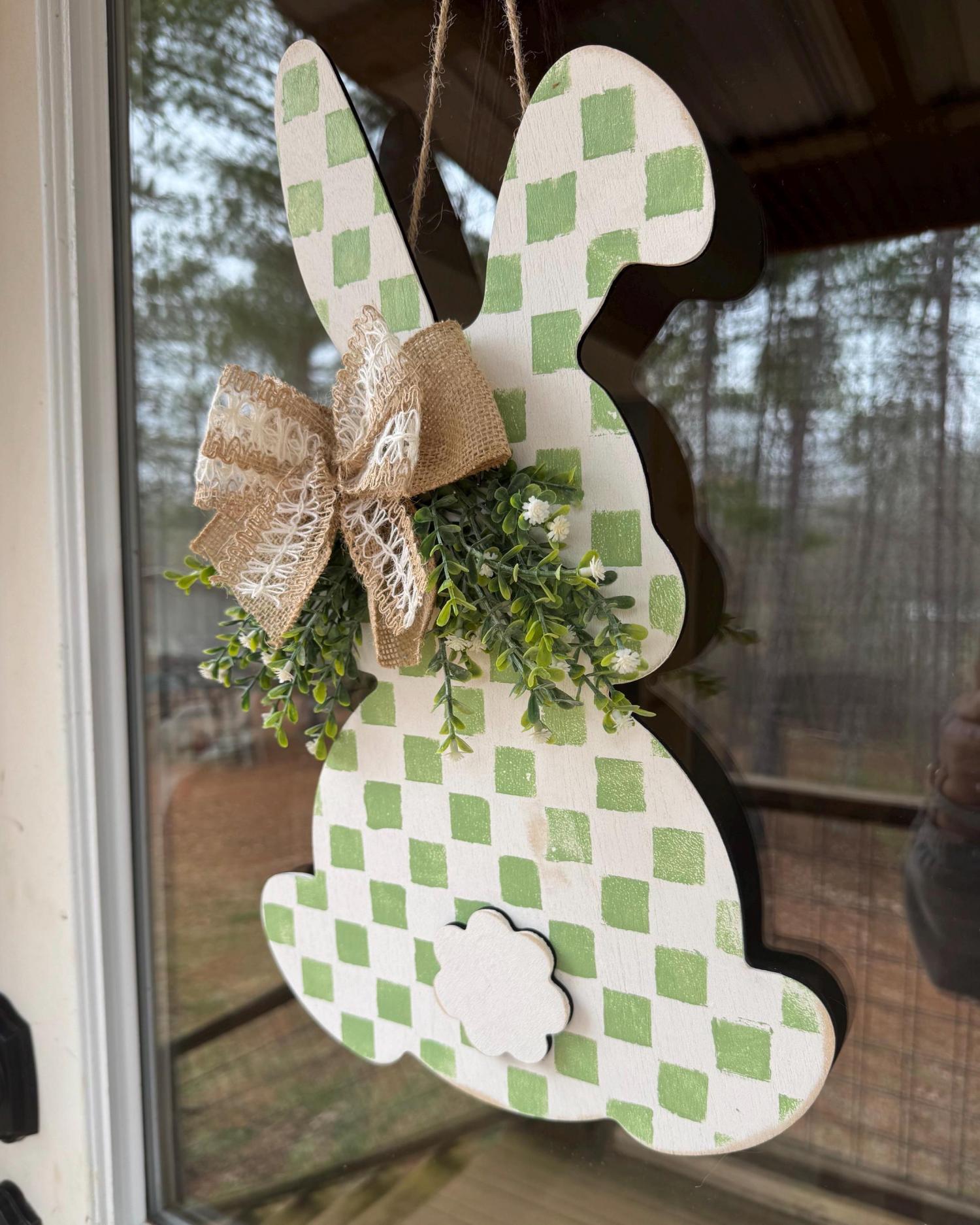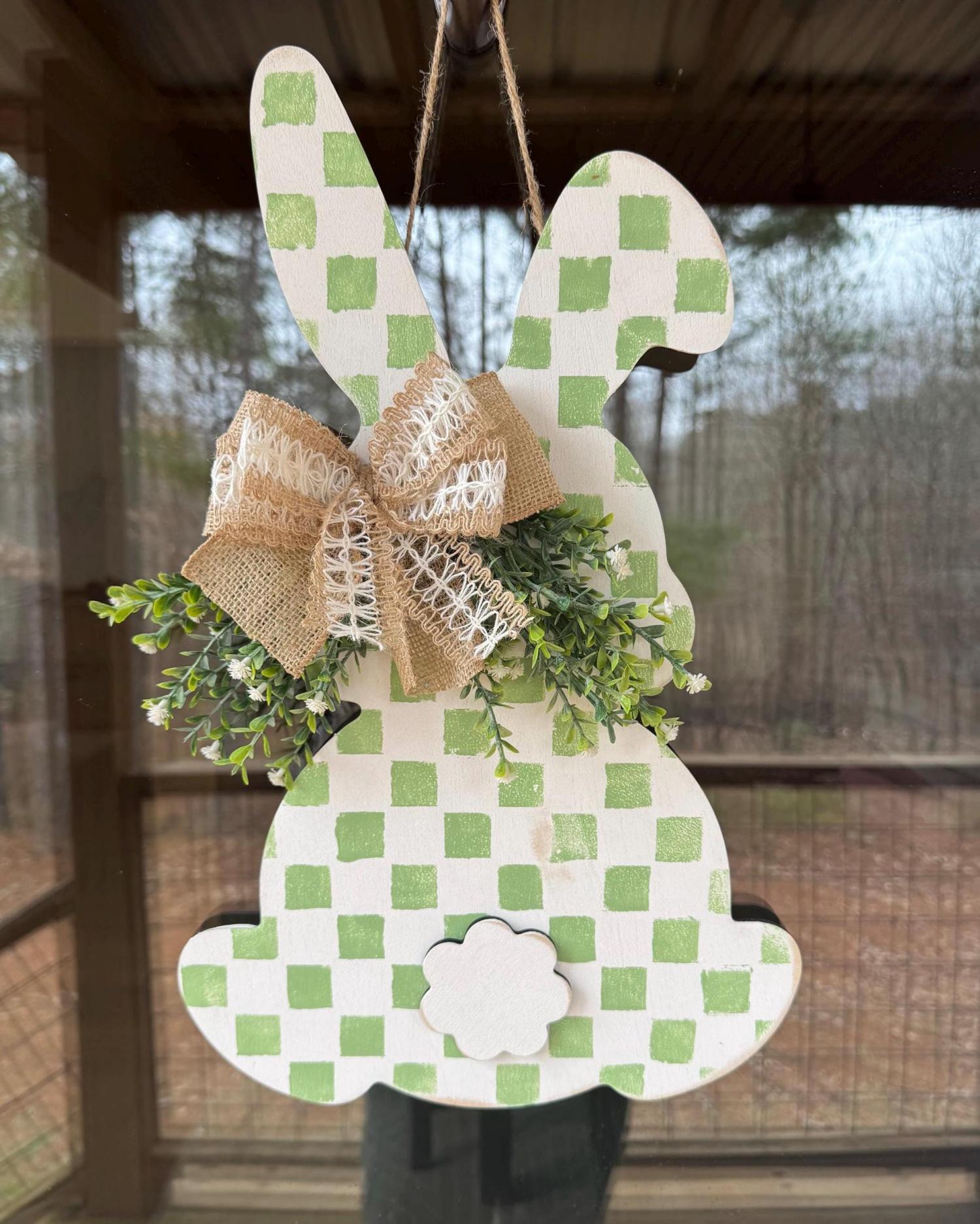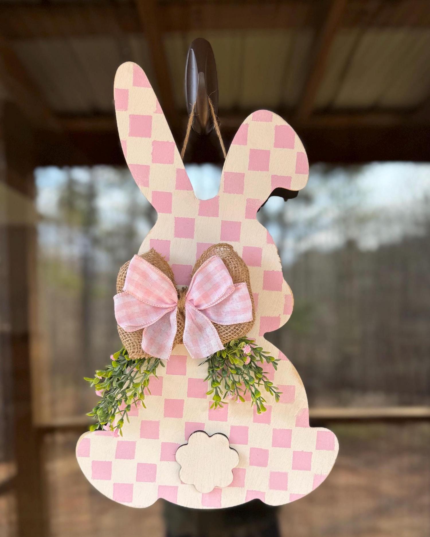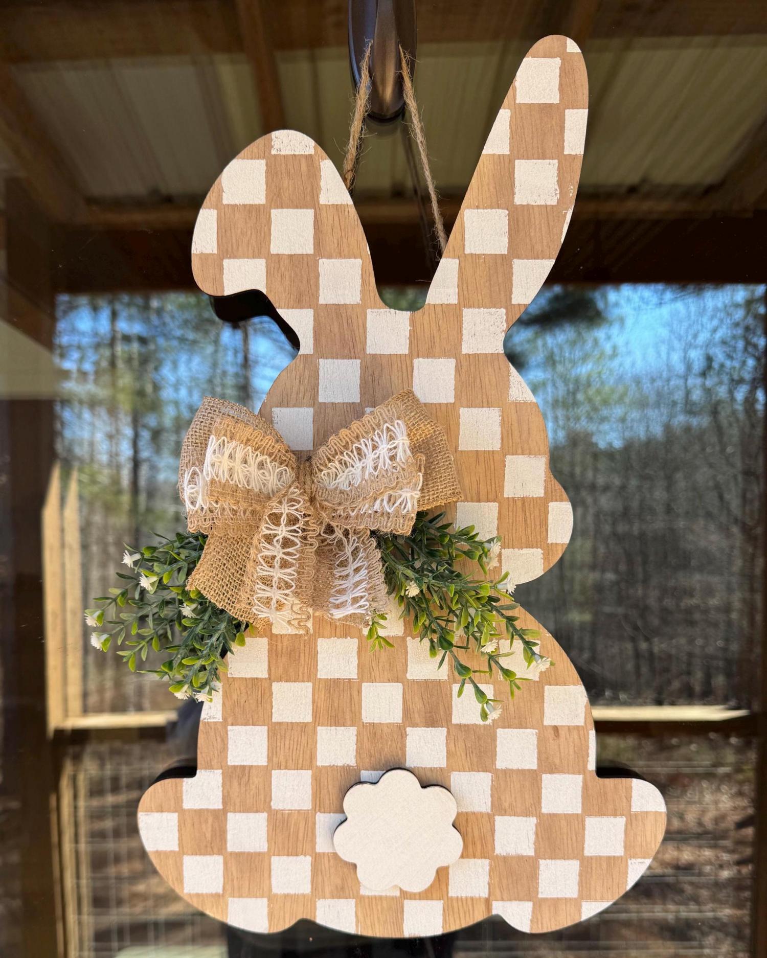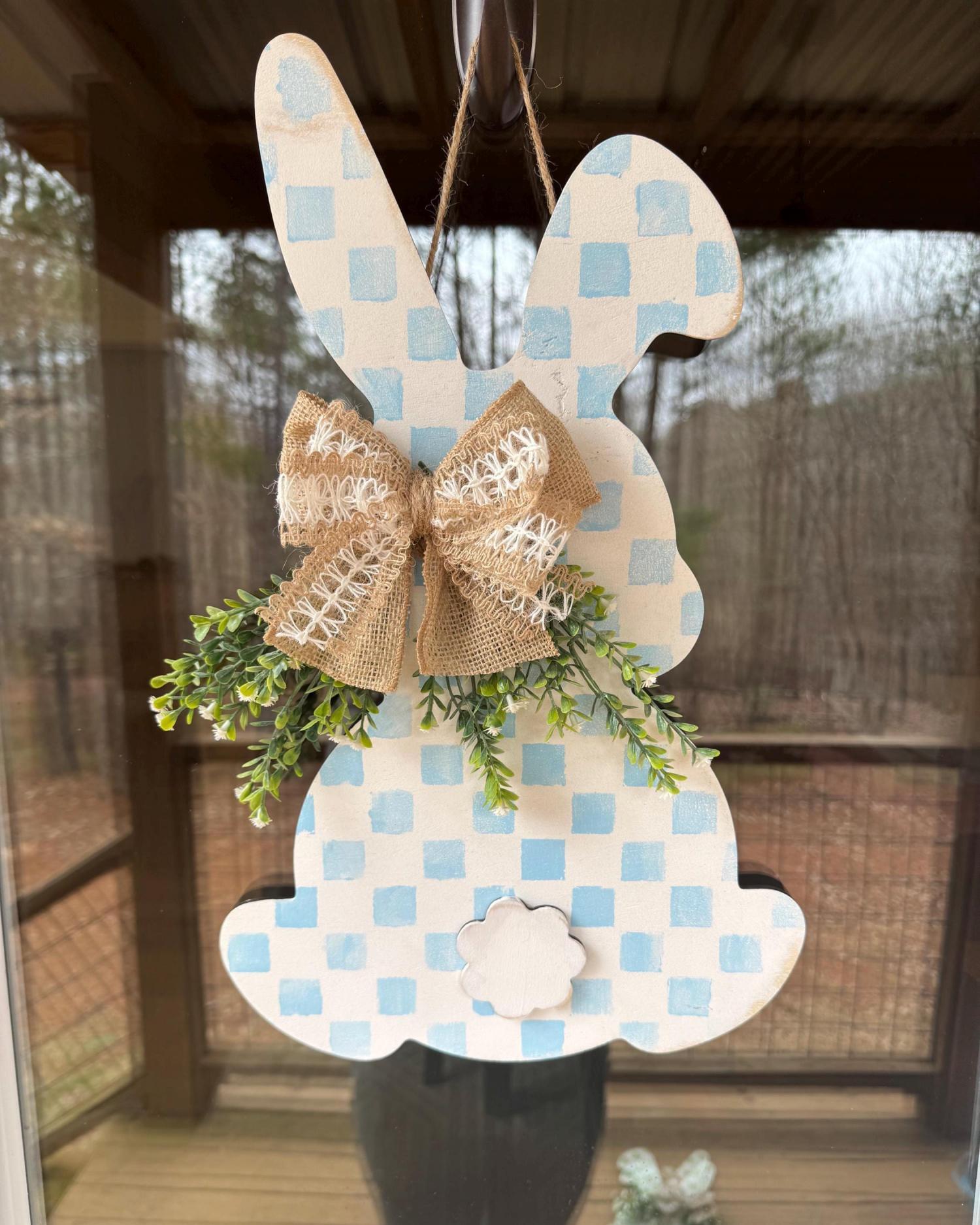 • Handmade wooden bunny door hanger