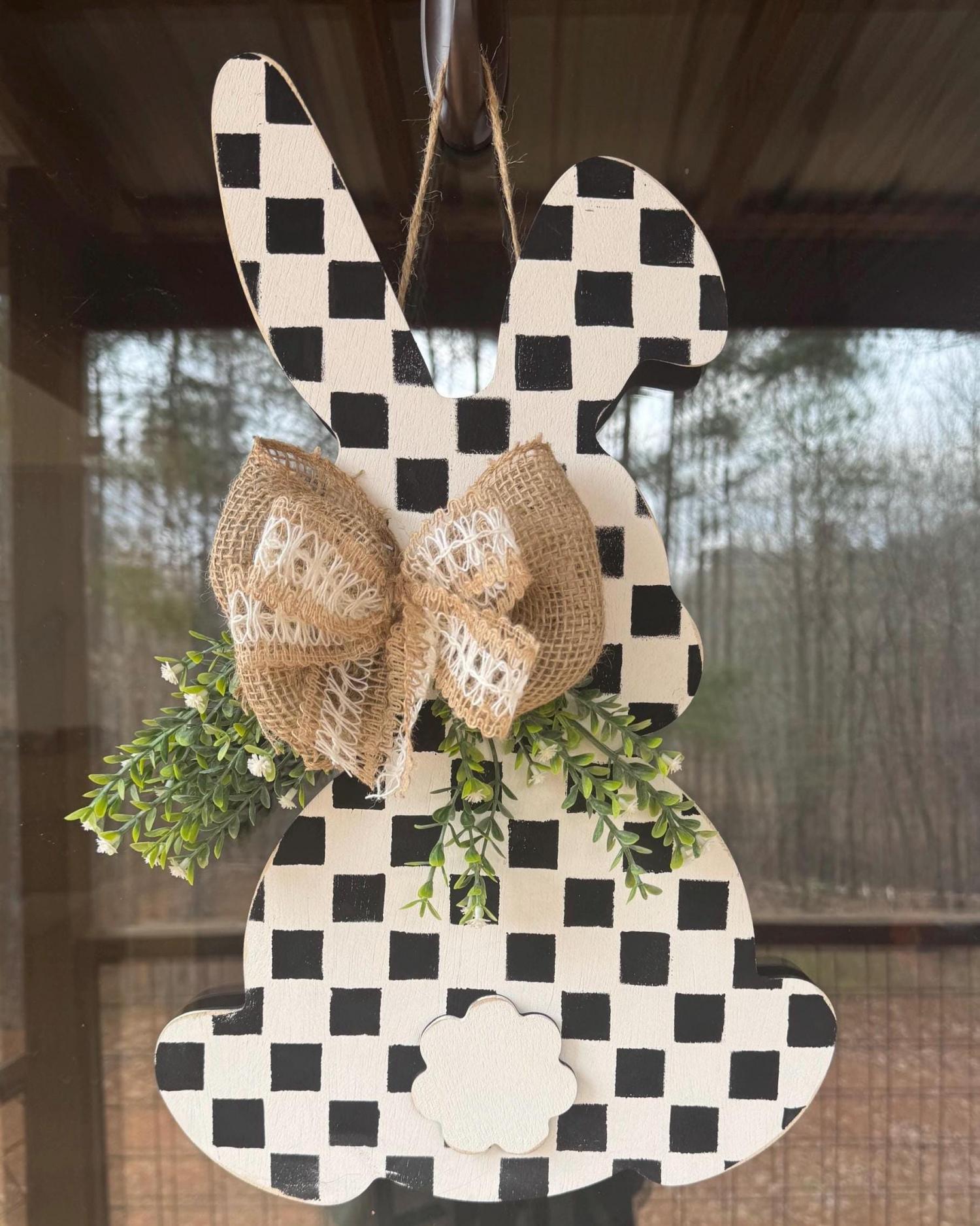 This design is available in a variety of color options, making it easy to match your Easter decor, spring porch, or home style. Whether you love soft pastels or prefer a clean black-and-white look, this bunny is the perfect statement piece for the season.