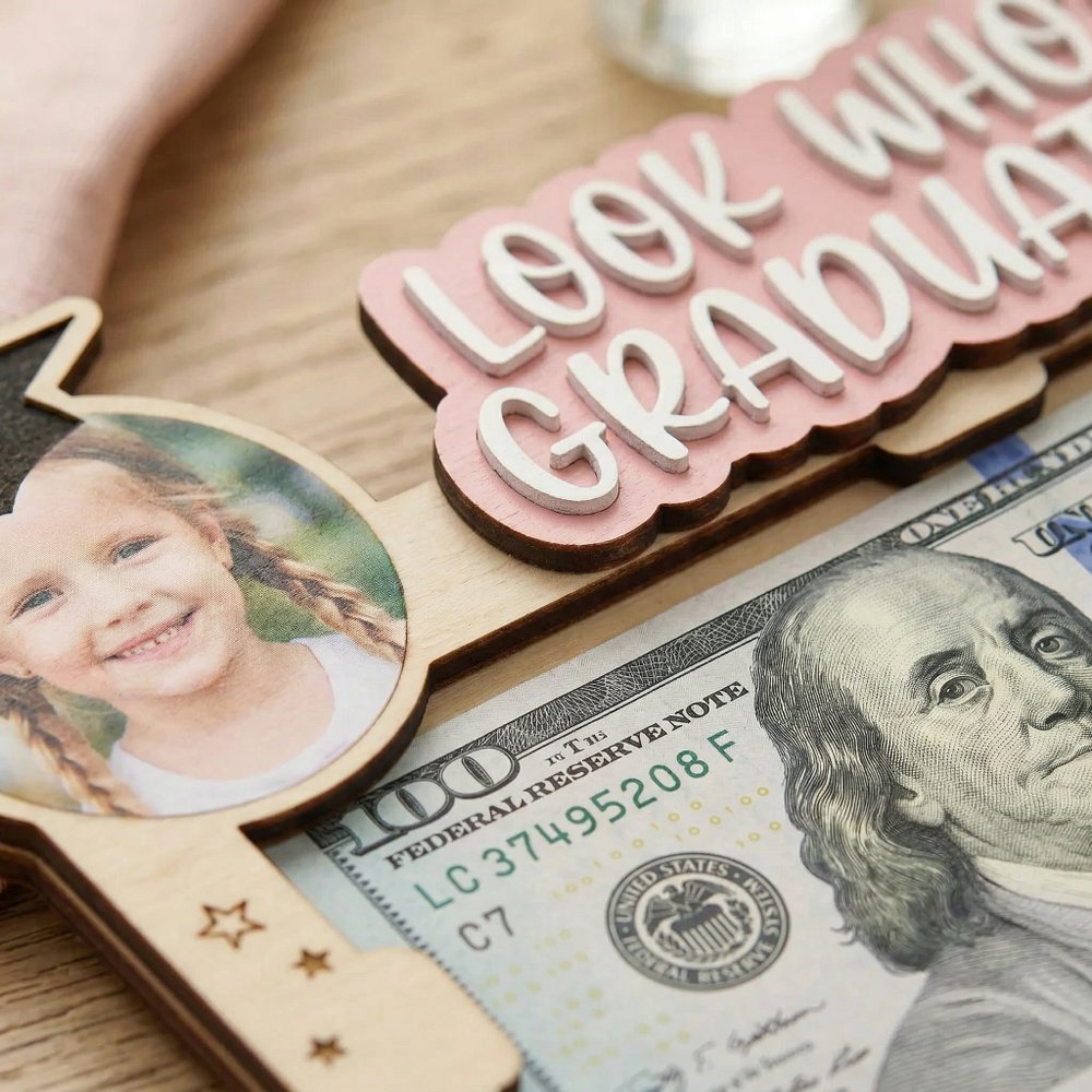 Celebrate your child's graduation with a one-of-a-kind wooden photo wallet featuring a graduation cap and scroll design. This isn't just a wallet—it's a proud moment turned into art.