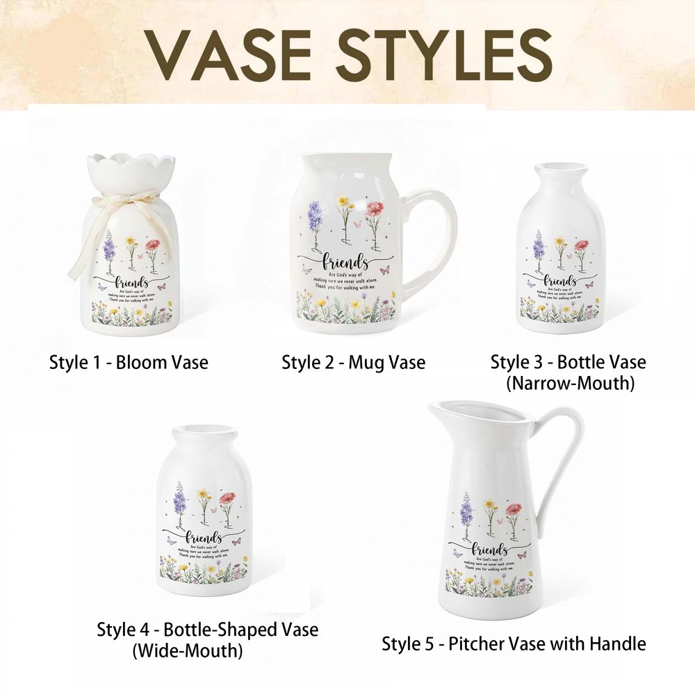 This beautiful ceramic vase is specially designed for best friends, featuring delicate floral details and customizable birth month elements. The warm, heartfelt design symbolizes the blooming and everlasting bond between besties, making it a meaningful decoration for any room.