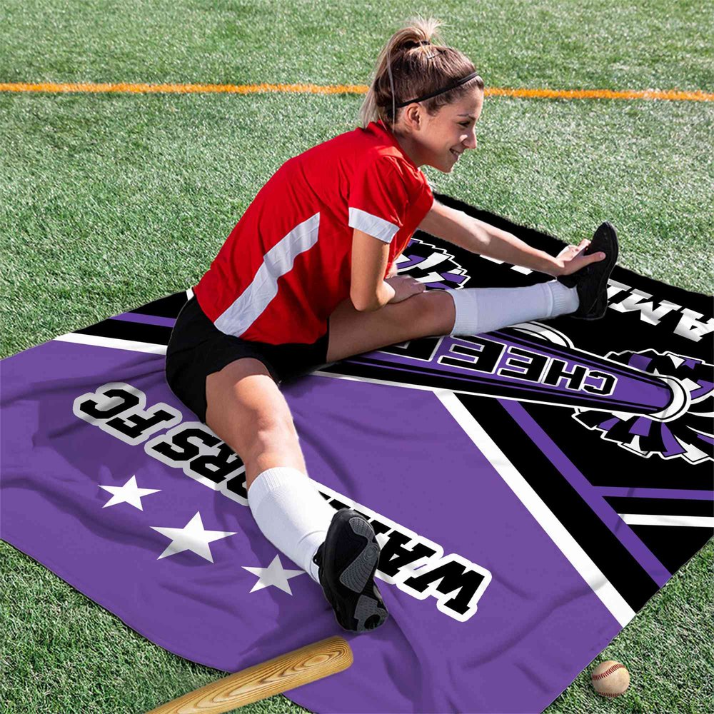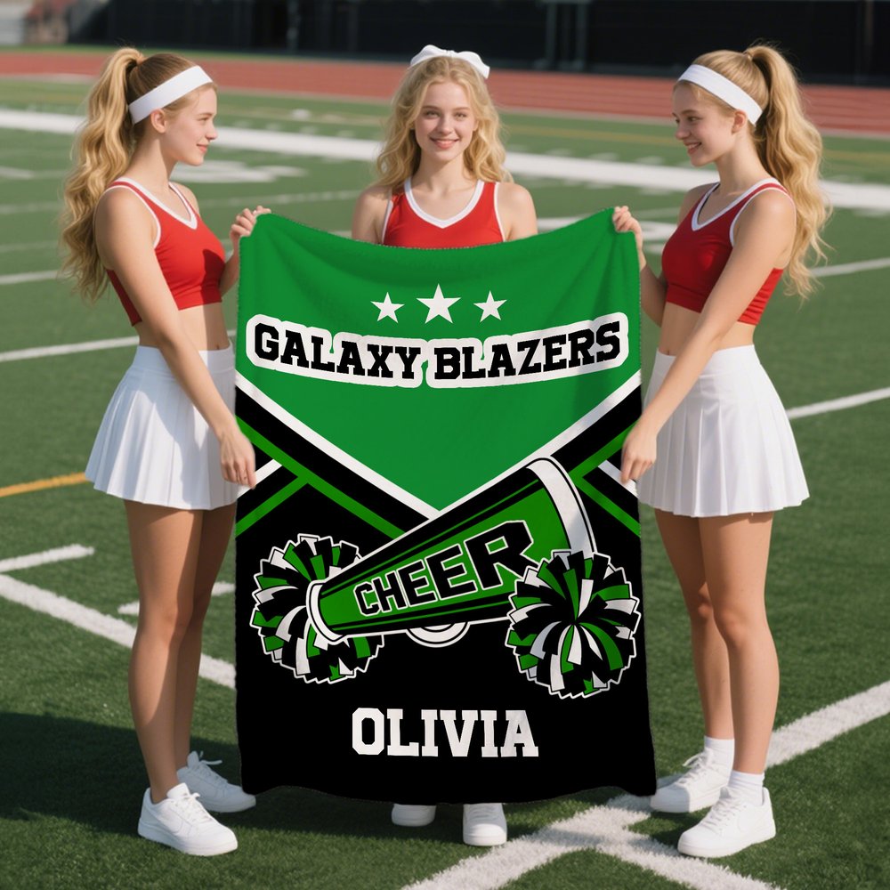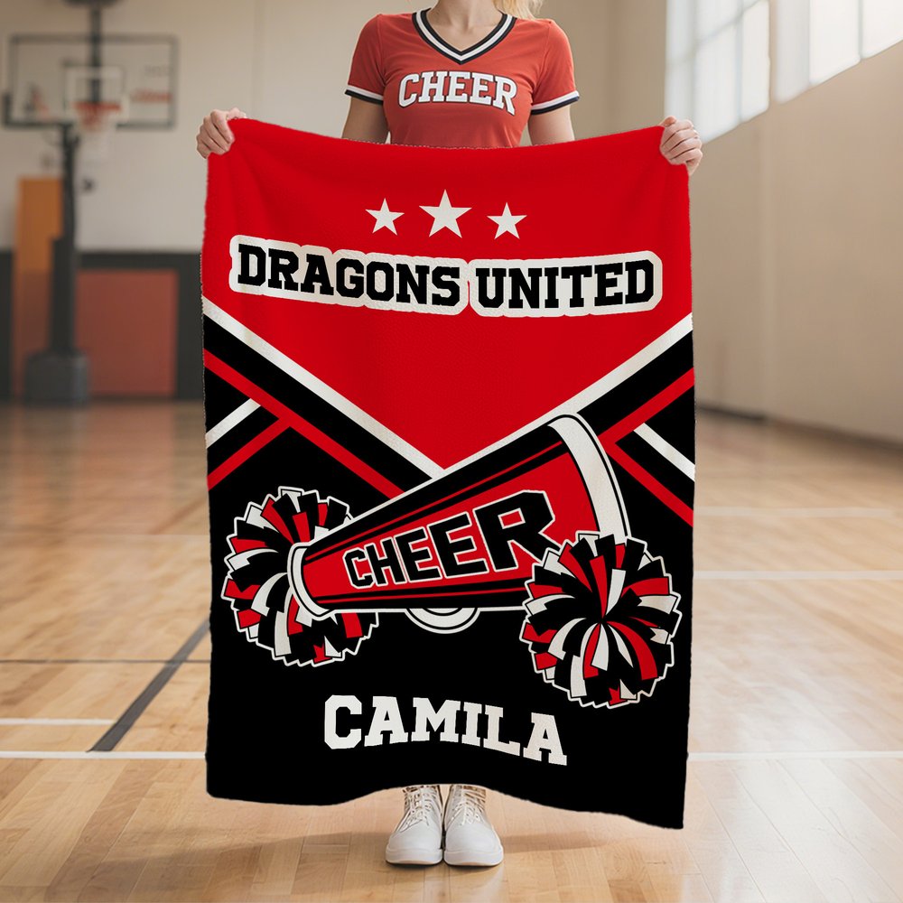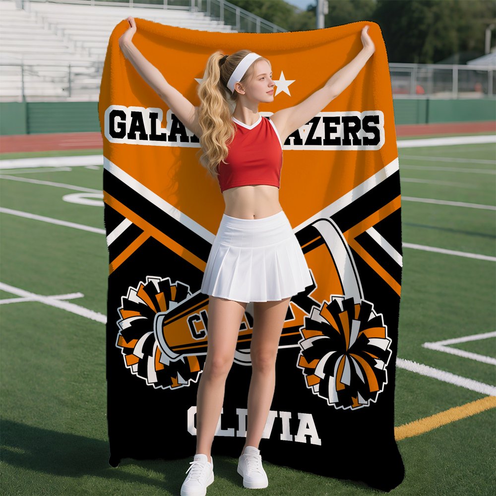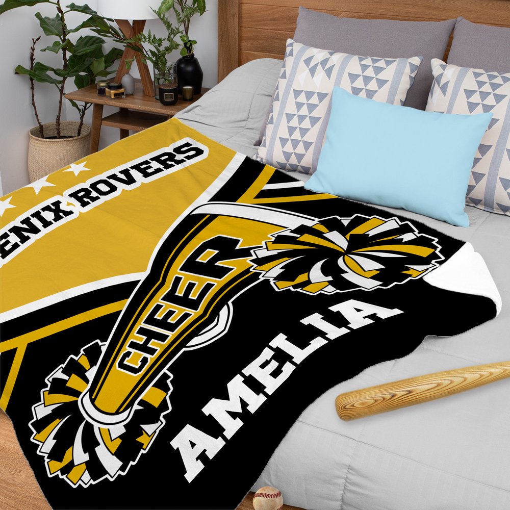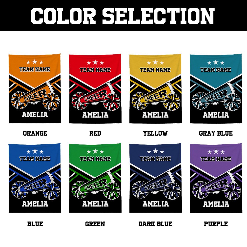 Specially crafted for passionate cheerleaders and sports fans! This vibrant blanket features bold "CHEER" lettering and dynamic pom-pom patterns, with customizable areas for team names and personal names. Let your squad shine with a design that celebrates team spirit and individual style!