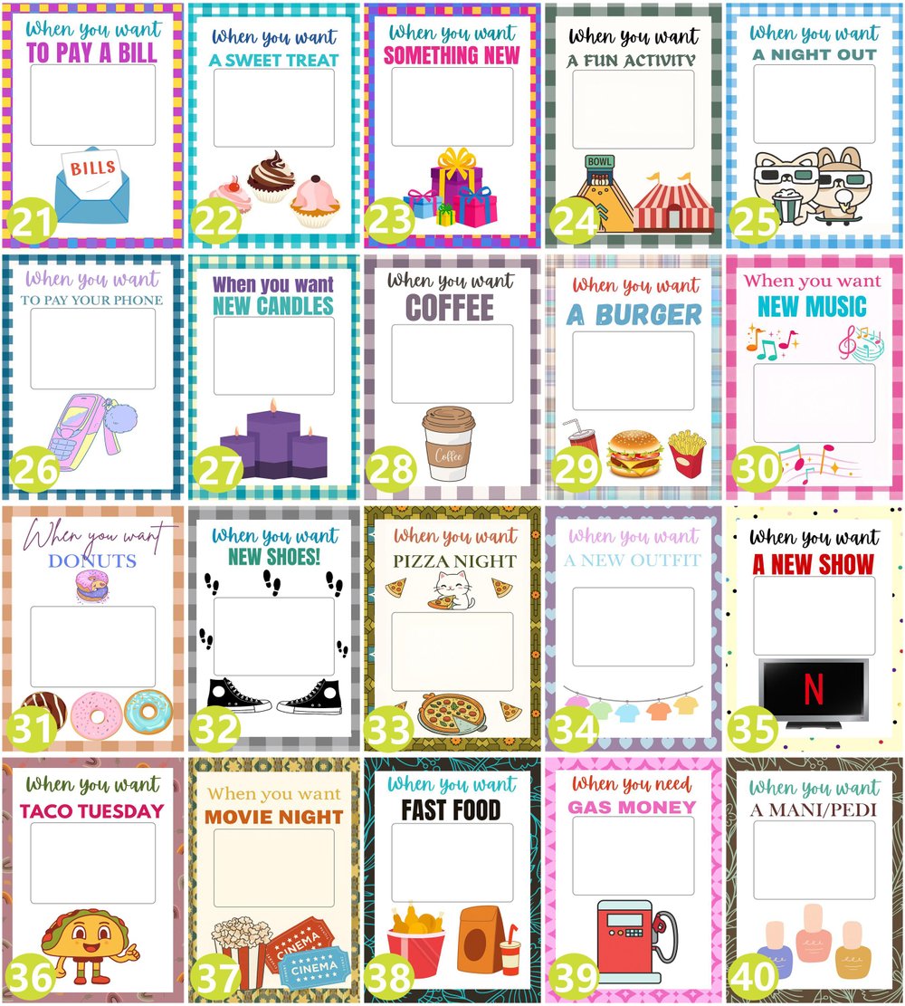 • A 4X6 spiral bound book of gift card pages. There are 40 different gift card pages to choose from. You will have a choice of 5, 10, 15, or 20 gift card holder pages along with a cover page, inside personal message page (. Total number of pages will be dependent on the number of gift card pages chosen. • Each page is printed with high quality ink on 110 lb cardstock paper. • Gift cards are NOT included. • Removable glue dots are included which are perfect for adding gift cards, cash and/or lottery tickets to pages.