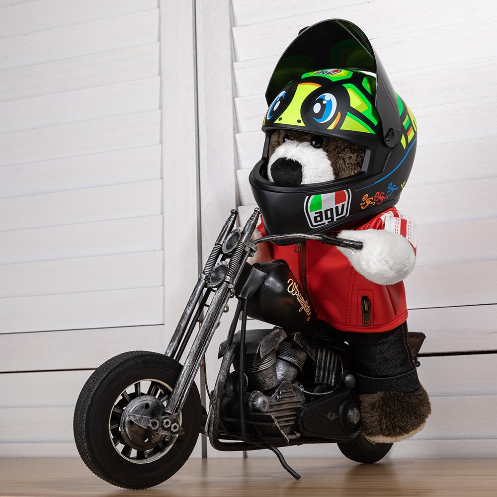 This plush toy is not only a great gift but also makes for a unique and eye-catching decoration. Whether placed on a bed, displayed on a motorcycle-themed shelf, or used as a centerpiece at a motorcycle-themed party, it will instantly add a touch of personality and charm to any space.