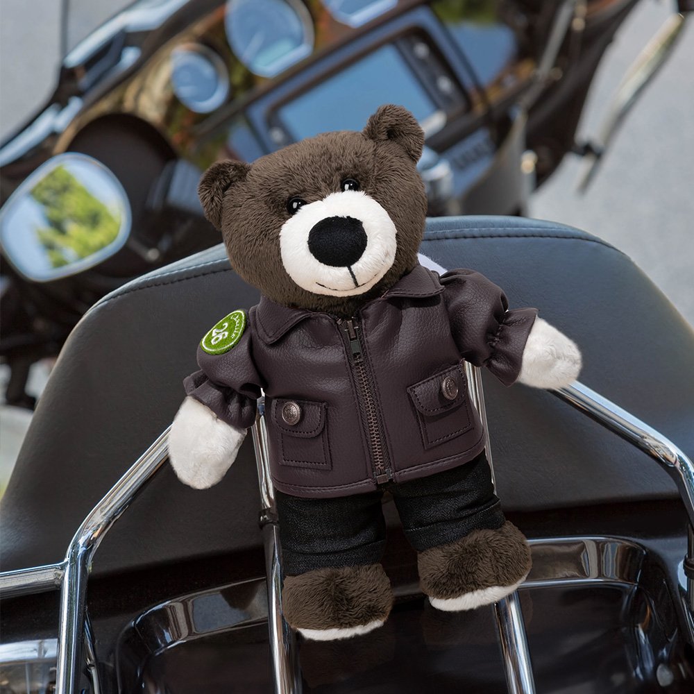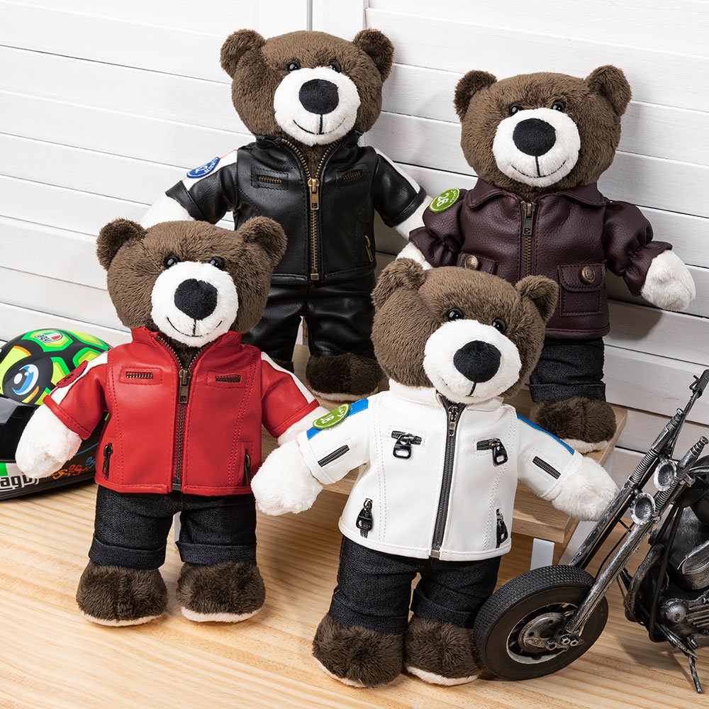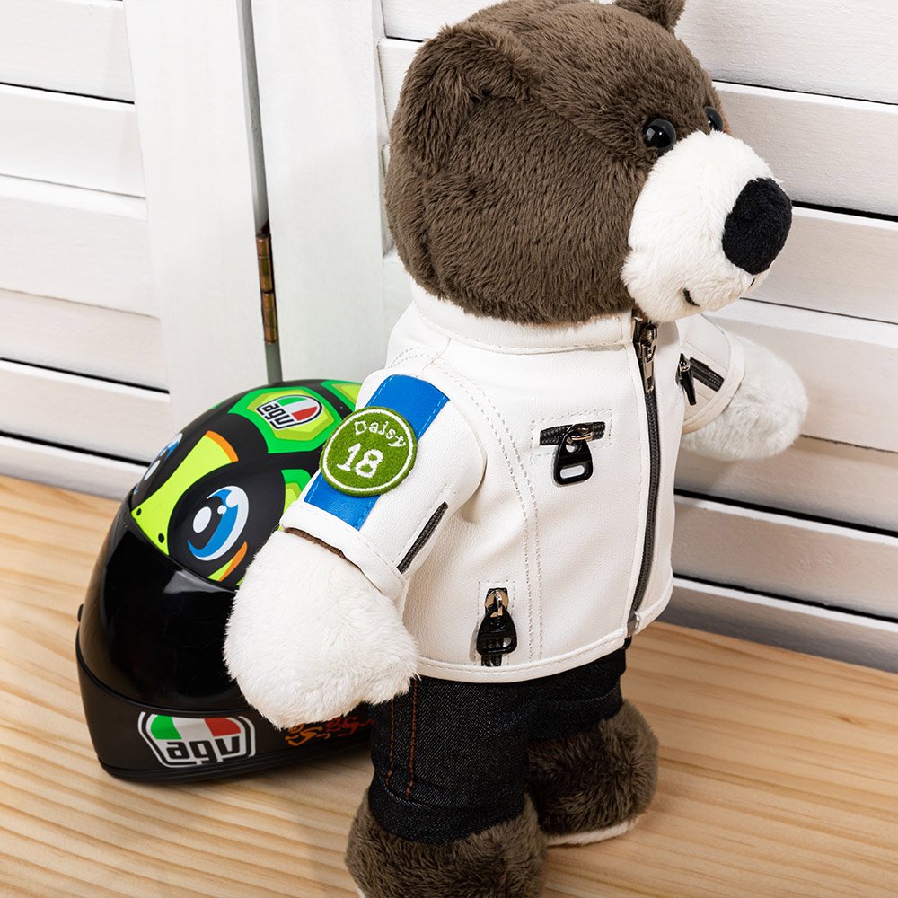 The teddy bear is dressed in a cool leather jacket and with 14 helmet styles. The personalized embroidery on the badge adds a personal touch, allowing you to customize the text on the jacket with the recipient's name and number.