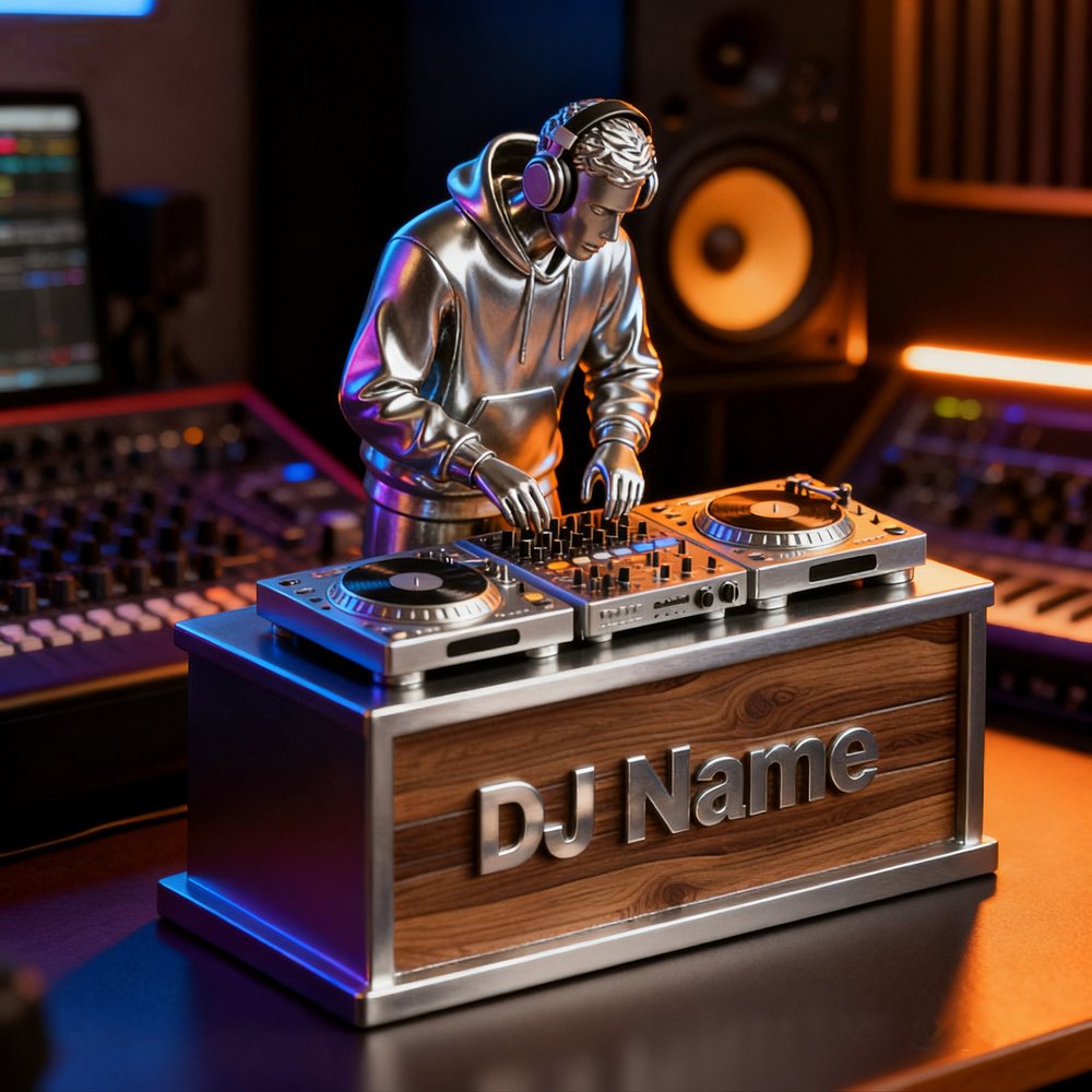 • Personalized with your name or custom text; • Music-themed design perfect for DJs and producers; • Ideal for studio, bedroom, or office display; • Premium materials with polished finish;