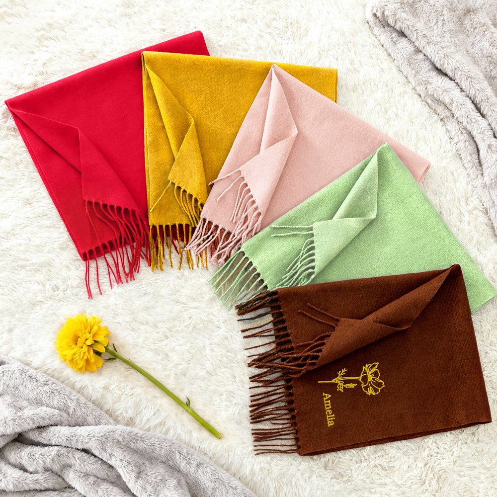 Wrap yourself in personalized warmth and style! Click to order this custom birth flower scarf today and make every outfit special. πΈπ§£β¨