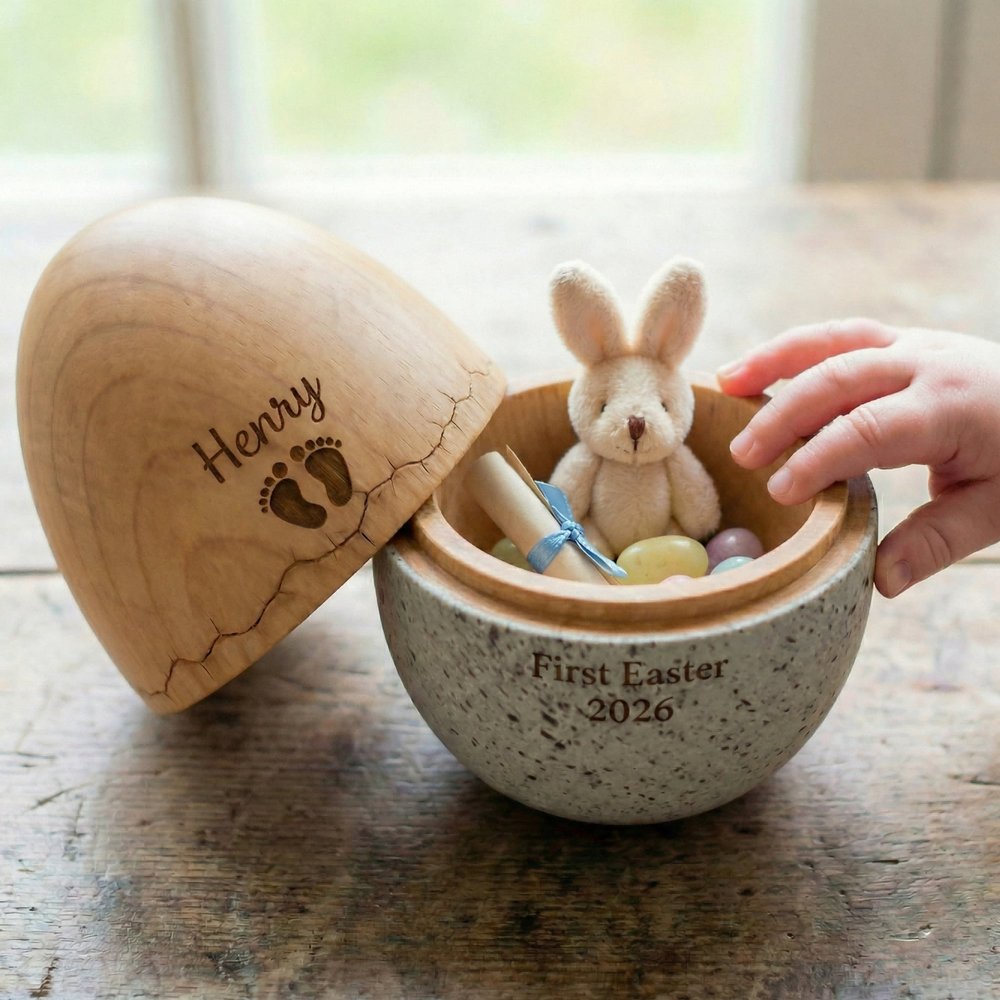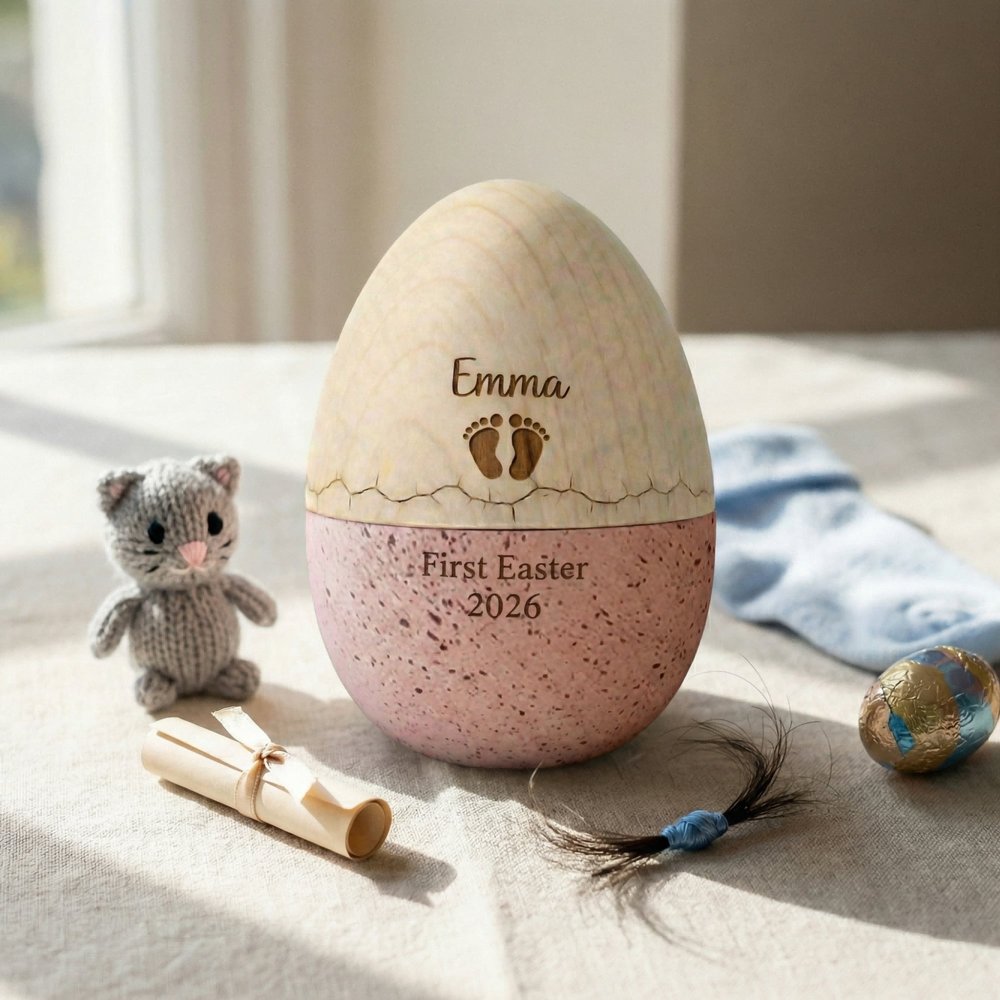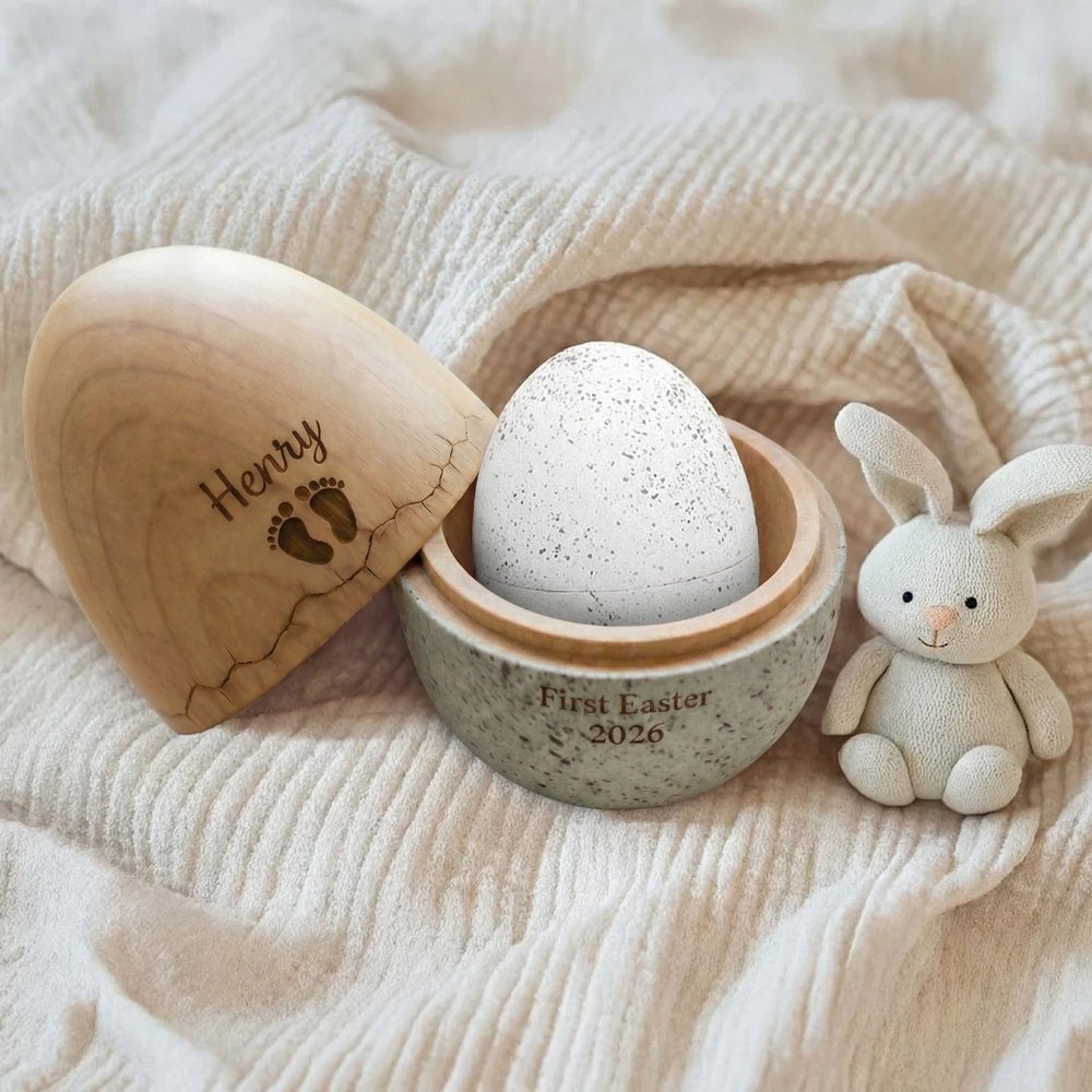 Capture the magic of your little one’s very first Easter with this Personalized First Easter Keepsake Egg. Delicately crafted and custom-engraved with their name and the year, this heirloom-quality egg turns a precious milestone into a timeless decorative treasure. More than just a holiday ornament—it’s a sweet, tangible memory to display in the nursery, keep in a memory box, or bring out each spring as a growing reminder of love and new beginnings.