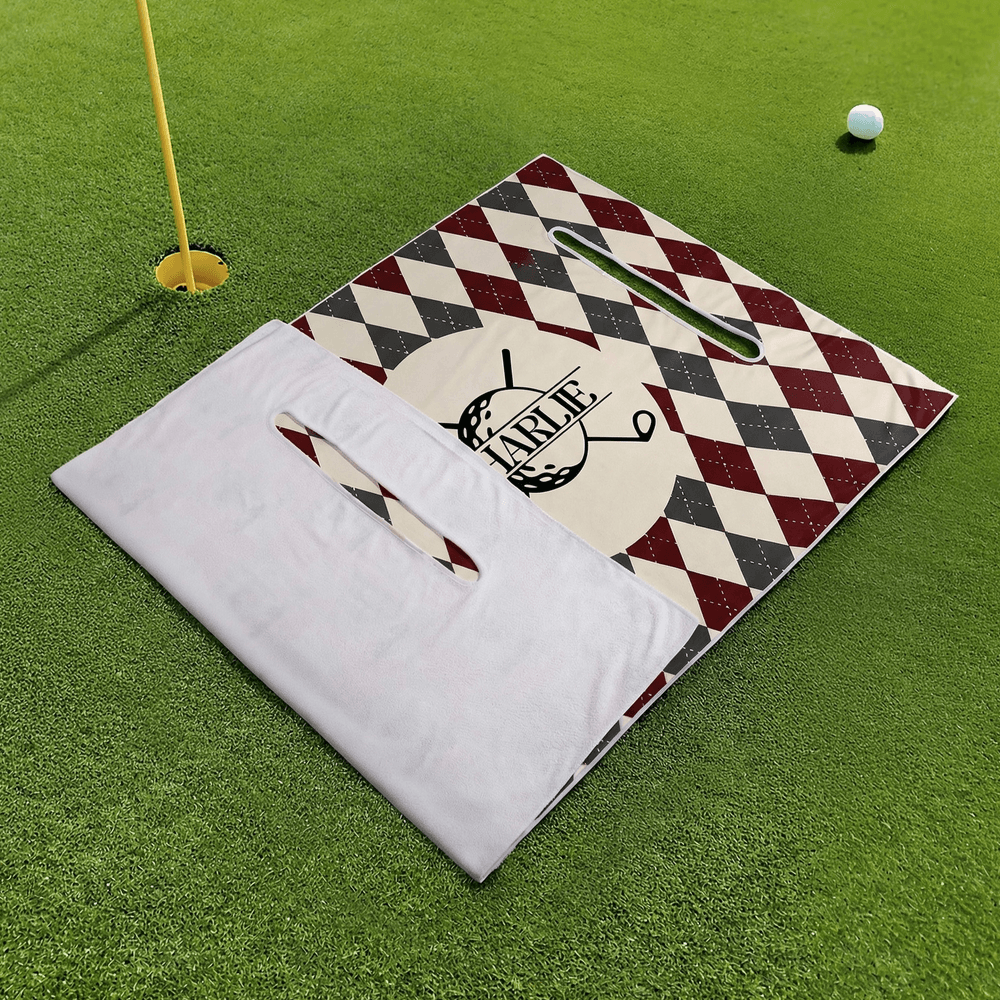 This seat cover features a classic checkerboard pattern and offers a variety of design options, including golf balls and clubs, to showcase your passion for the sport. It can also be customized with your name and initials, making it a truly unique keepsake.