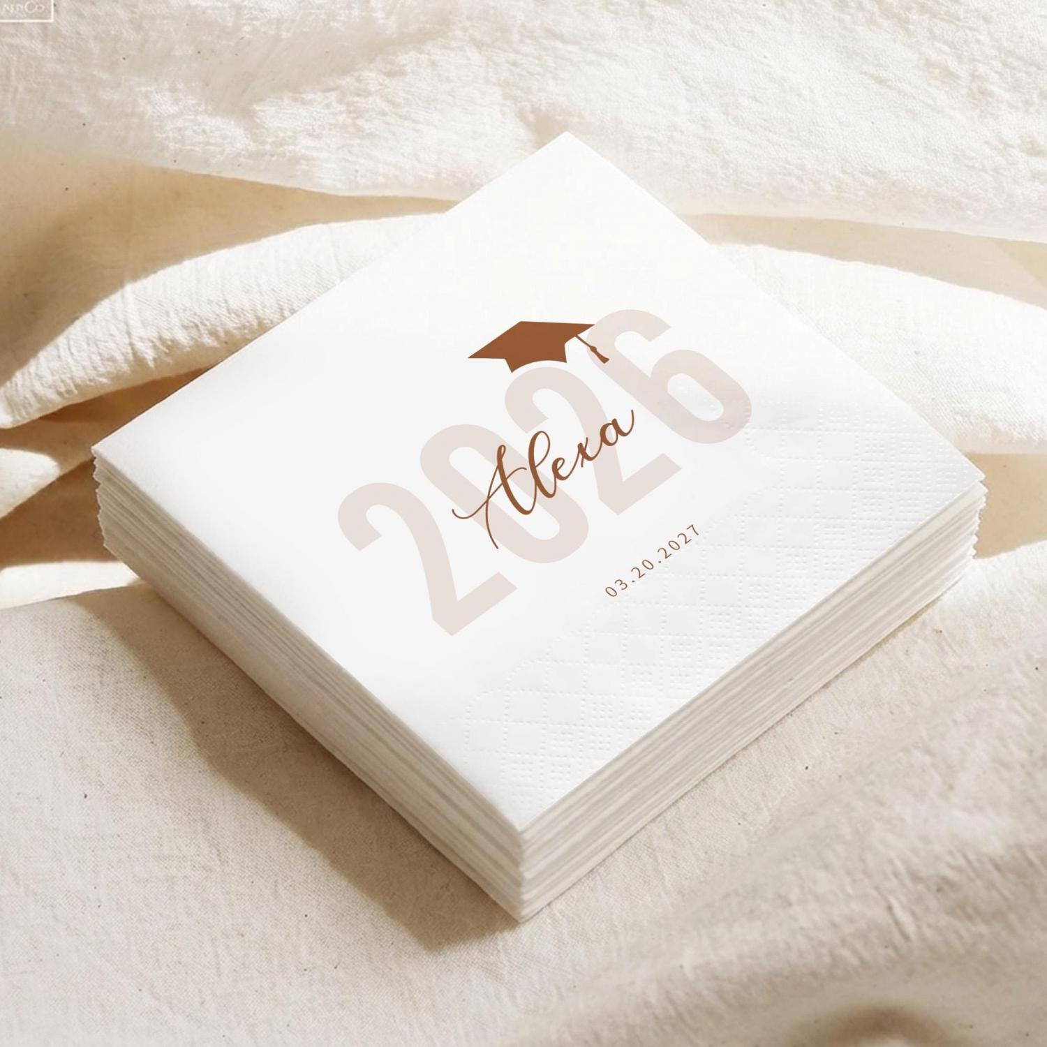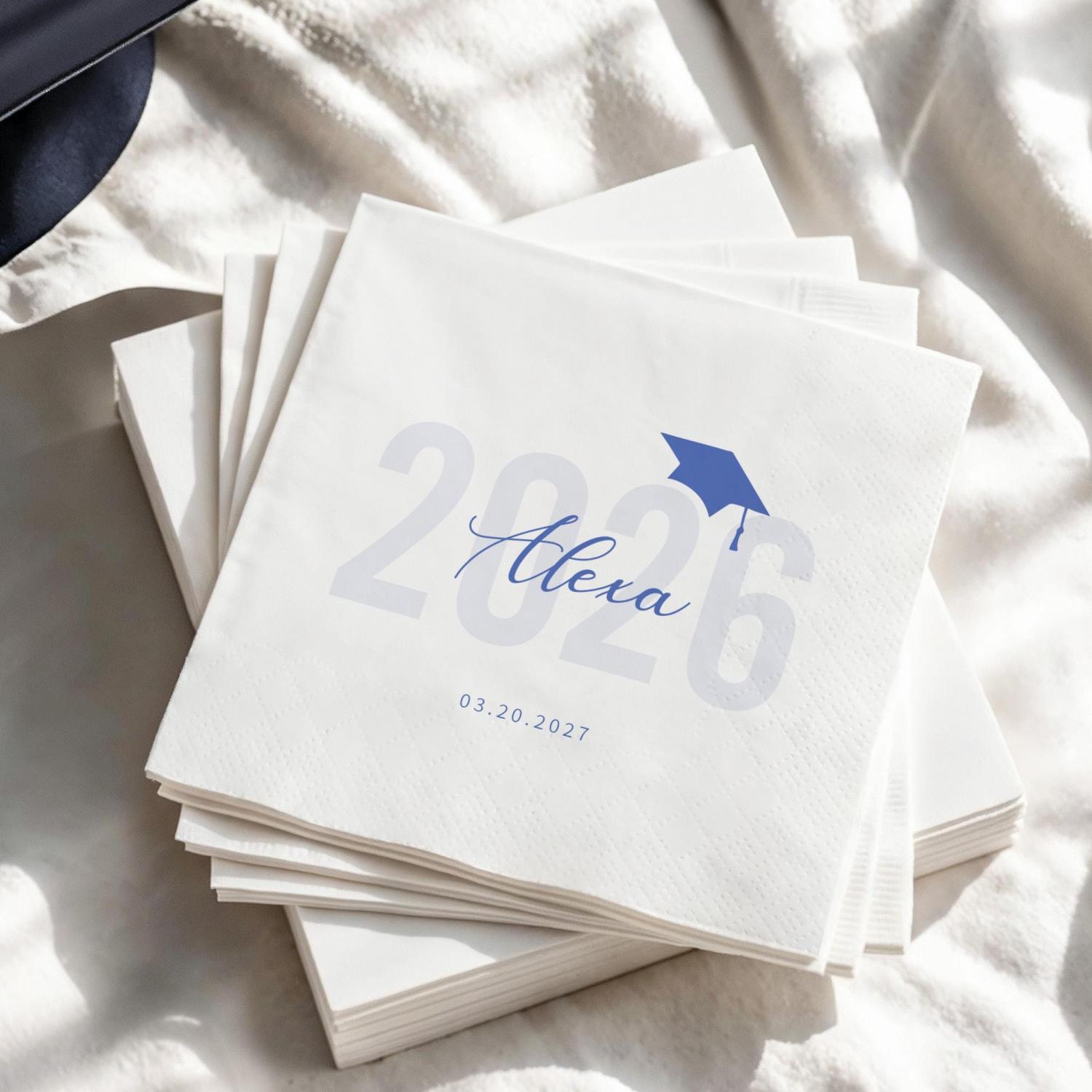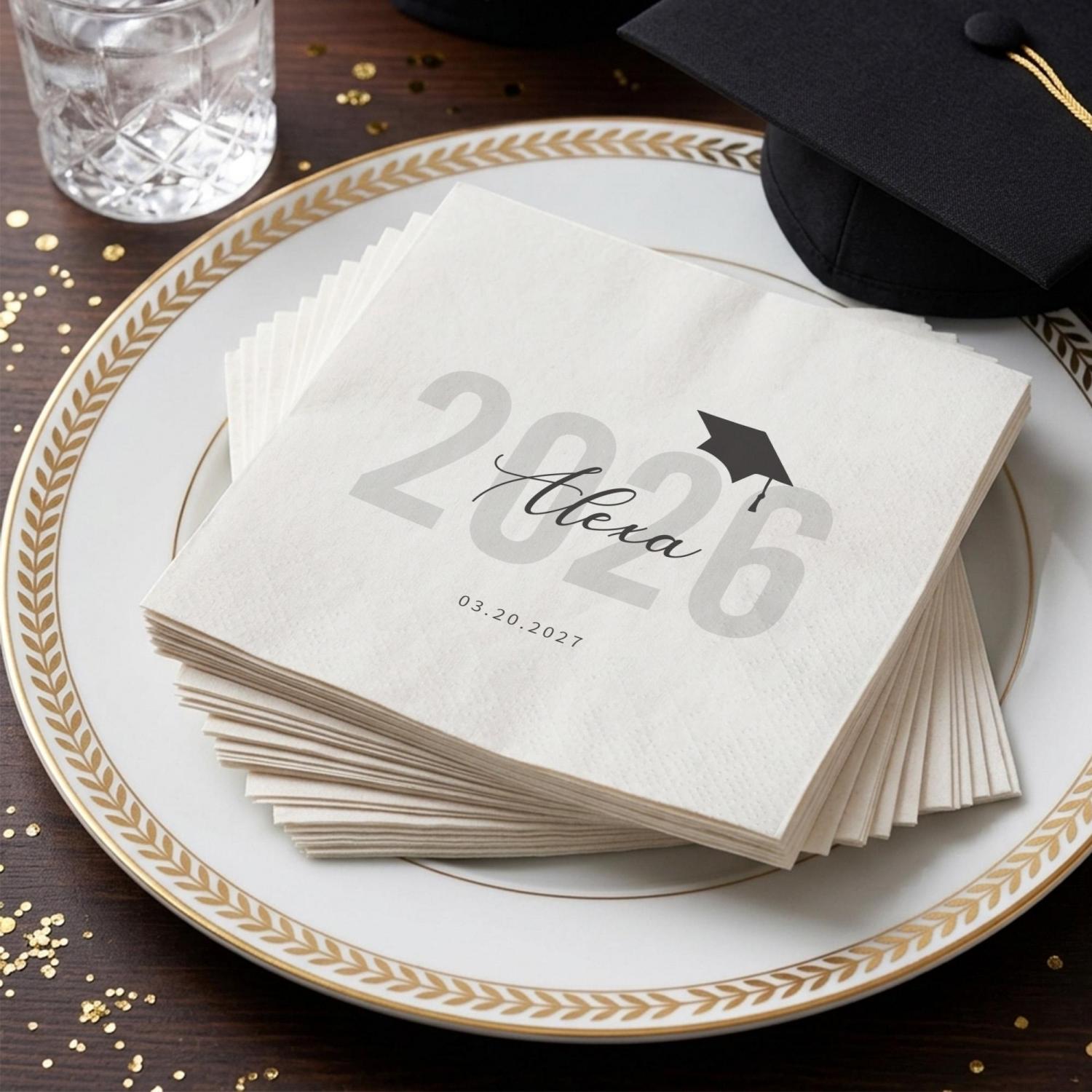 Elevate your Class of 2026 graduation party with Personalized Graduation Napkins! Customize the graduate’s name, year, and date now to create a stylish, polished set of napkins that makes your celebration unforgettable.