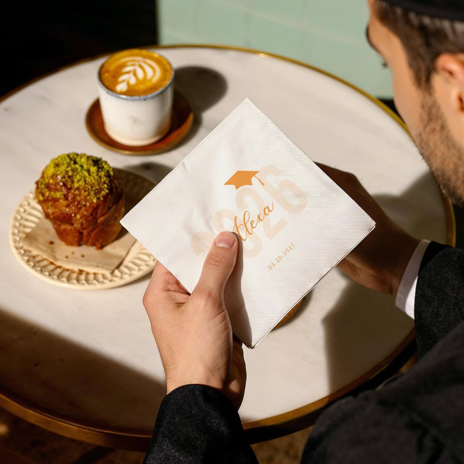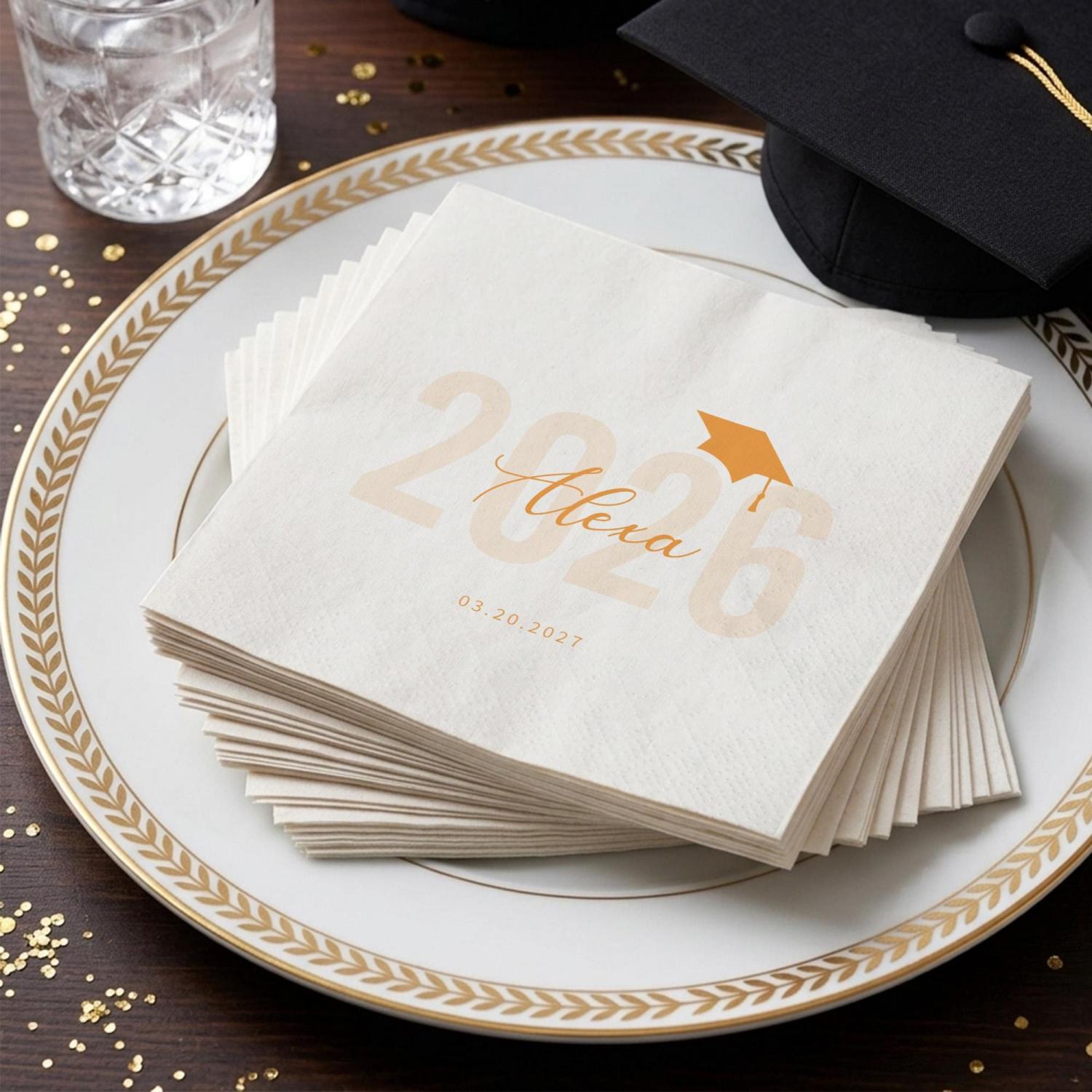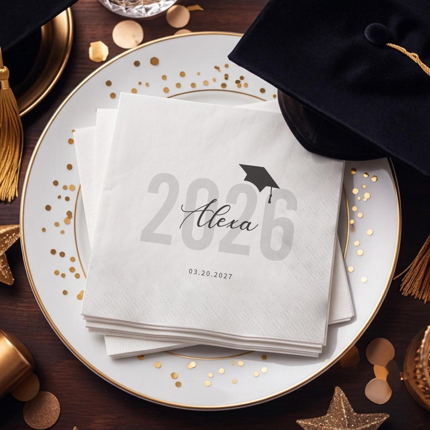 Elevate your Class of 2026 graduation party with Personalized Graduation Napkins! Customize the graduate’s name, year, and date now to create a stylish, polished set of napkins that makes your celebration unforgettable.