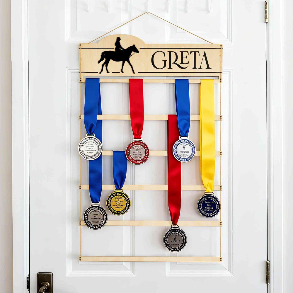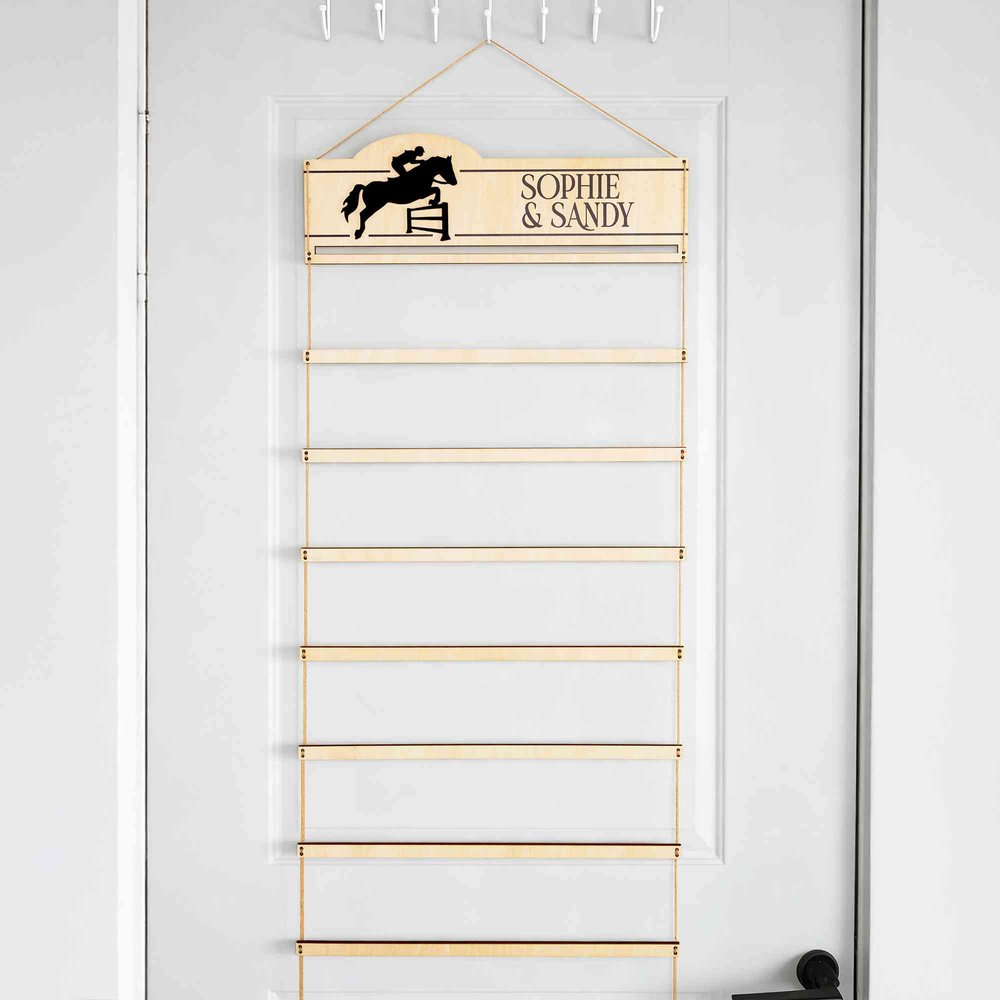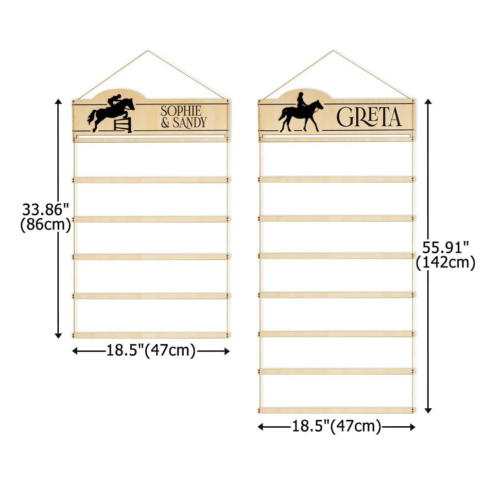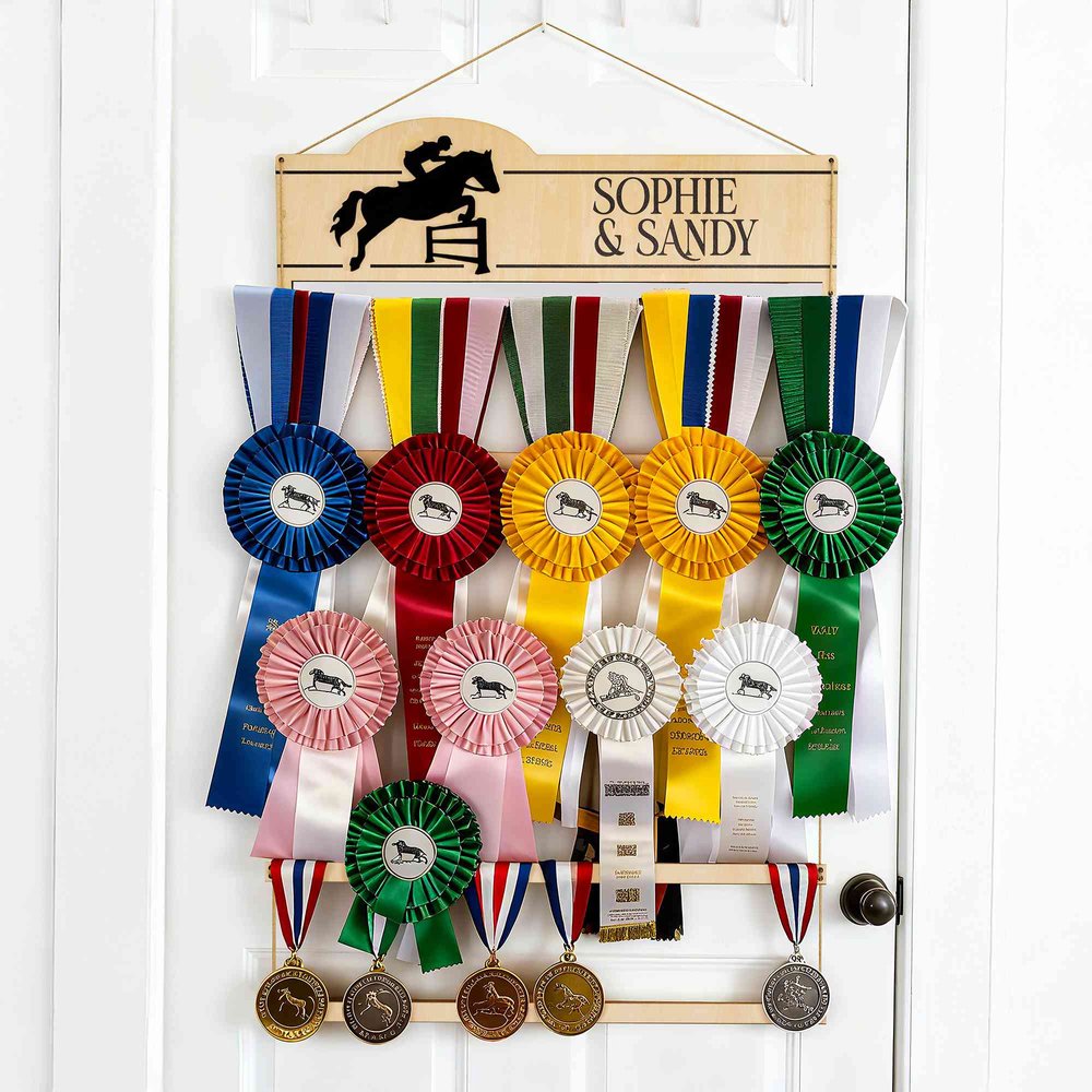 Easily hang it in your bedroom, tack room, office, or living area. This expandable display grows with your accomplishments, offering a graceful and personal way to showcase awards from shows, competitions, or special equestrian events.