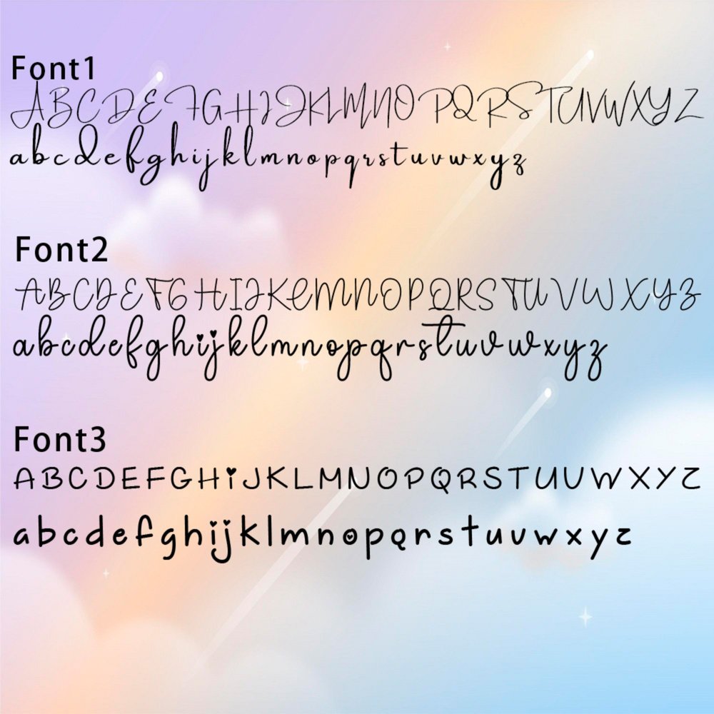 This water bottle features playful candy-colored hues that catch the eye with their whimsical charm. The lid is designed like an ice cream, complete with waffle-textured bunny ears and adorable marshmallow decorations. We provide three water bottle color options, so you can choose your favorite. Personalize it with your children’s names in one of three stylish fonts to match their unique personalities.