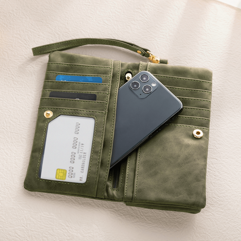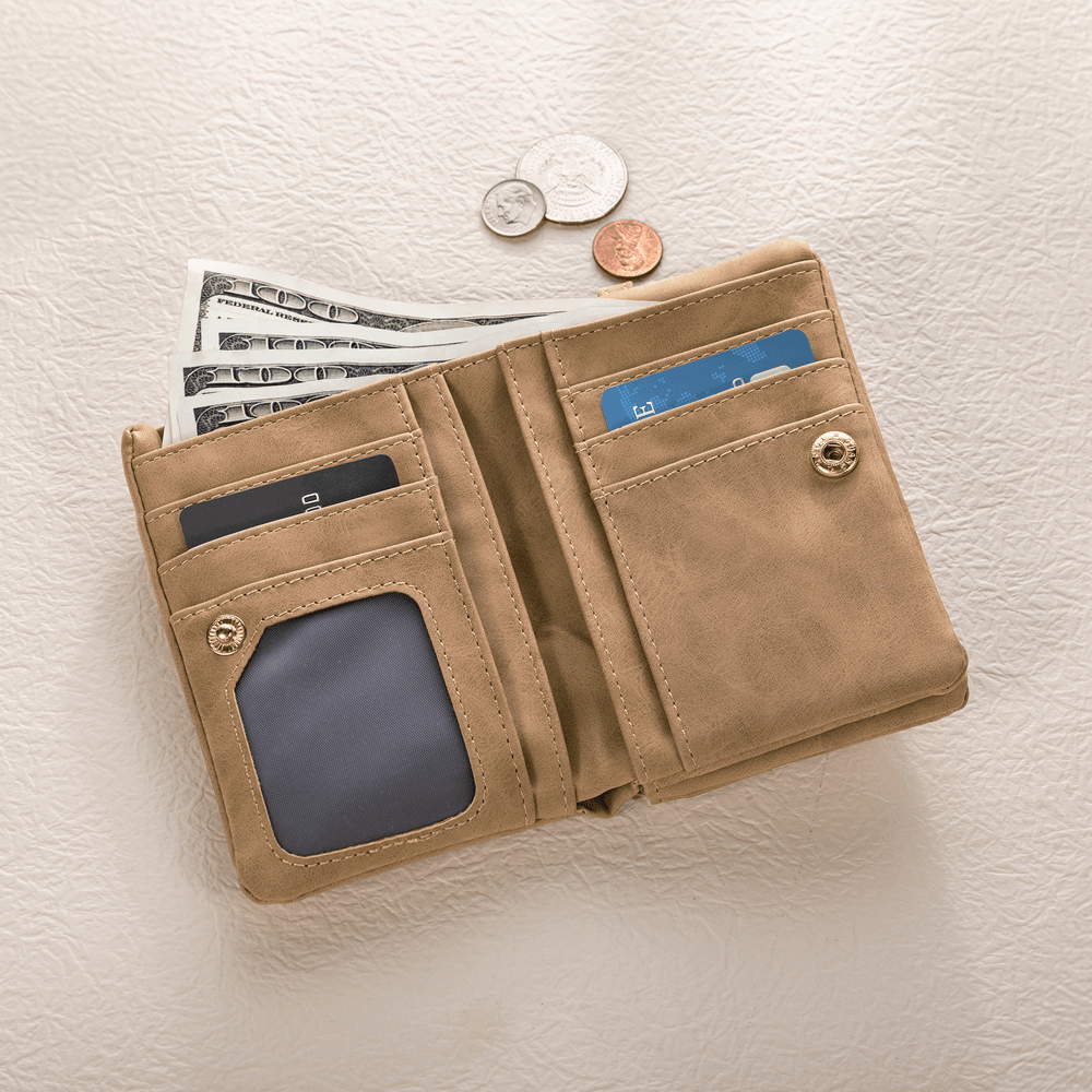 The tri-fold design is compact and easy to carry—whether tucked into a bag or held in hand with the wrist strap. Multiple card slots and compartments provide practical, well-organized storage for everyday essentials. It turns the promise of “always together” into a quiet, everyday detail—keeping warmth and companionship close at hand.