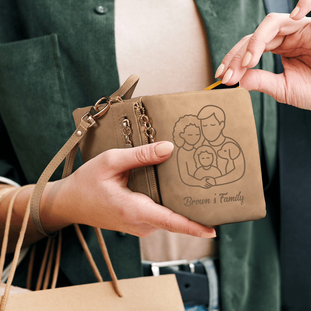 This wallet features a minimalist line-drawing design inspired by family silhouettes. You can customize it with patterns such as a family of four, parent and child, or even a scene that includes a beloved pet, paired with personalized text. With clean, simple lines, it captures the warmth of family companionship. Every time you open it, you're reminded of the unique emotion of home—turning love into something tangible, part of everyday life.