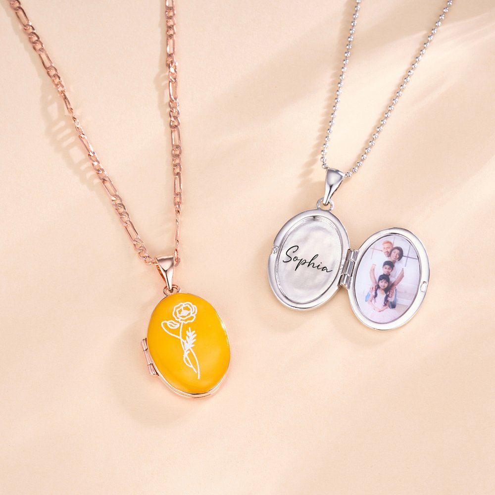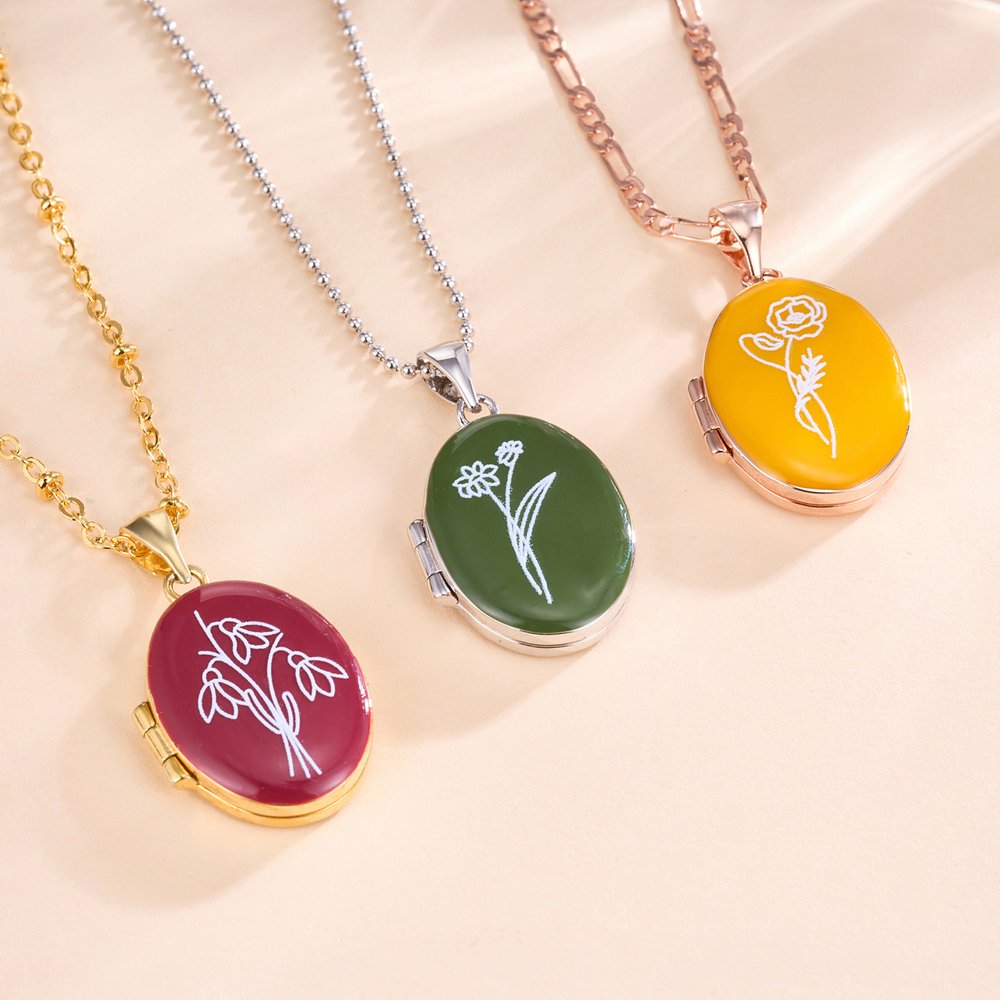 | Feature: | Hypoallergenic, Lead Free, Nickel Free, Birth Flower Design, Name & Photo Customization |