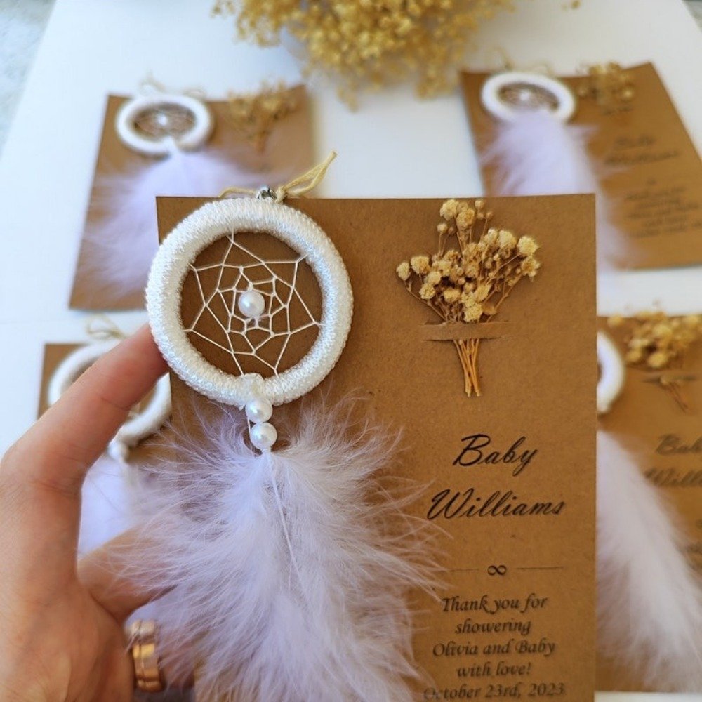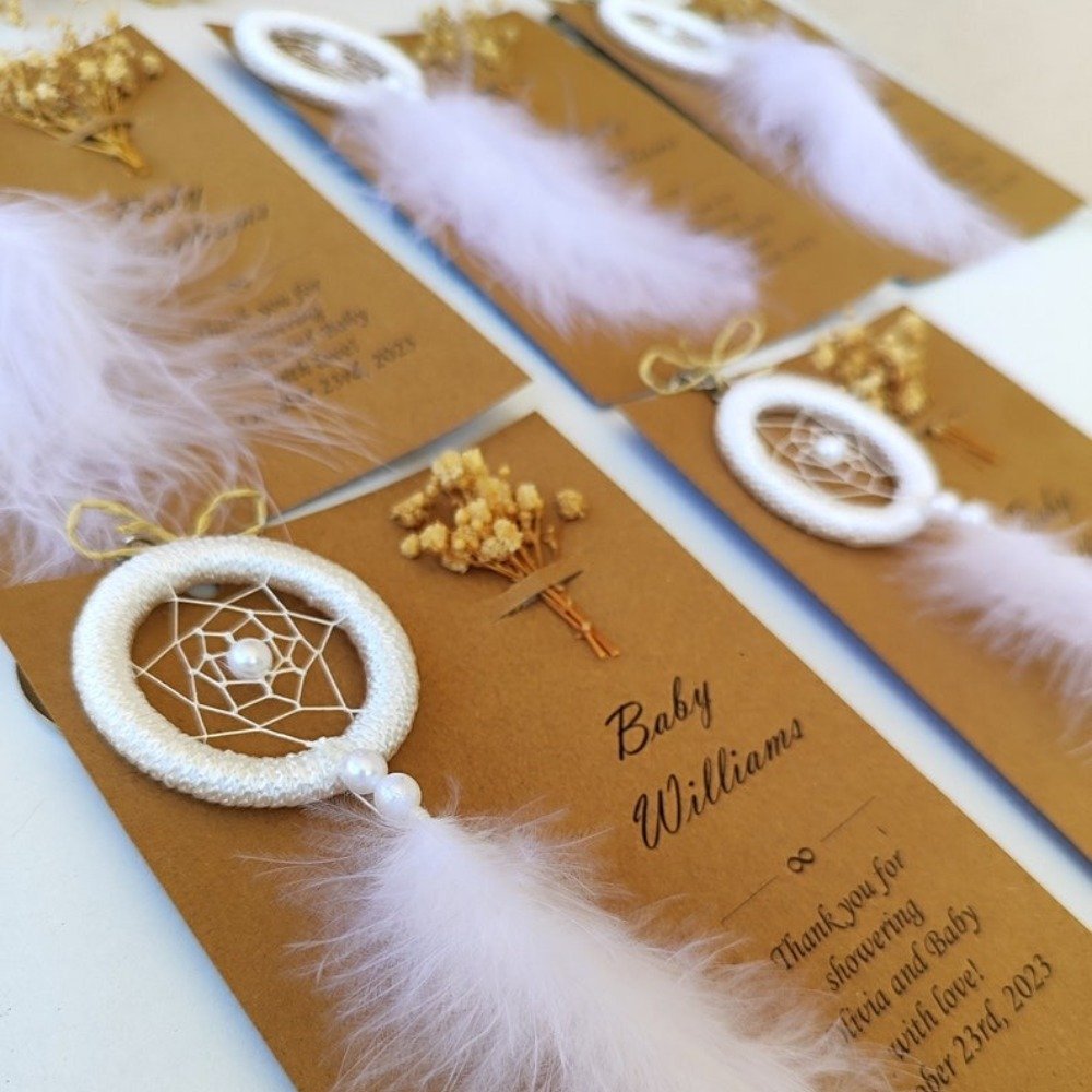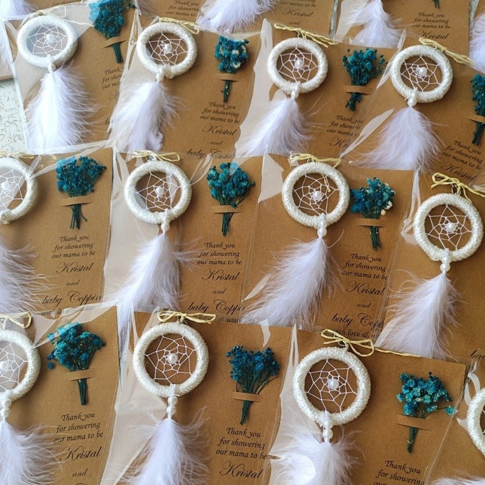 Boho & rustic weddings Bridal showers & baby showers Birthday & bachelorette parties Engagement & anniversary celebrations Sweet 16 & Quinceañera favors Baptism & christening gifts Graduation parties Corporate & volunteer appreciation gifts Teacher or nurse appreciation gifts Memorial & celebration of life ceremonies Church or community gatherings Wellness retreats & spiritual events Guest thank-you favors Neighbor & friend gifts Charity or fundraising events Meaning Behind the Dreamcatcher: Dreamcatchers are believed to protect from negativity and bring good energy — making them a symbolic and thoughtful gift for guests, newlyweds, or new parents. A beautiful ethnic-inspired favor, symbolizing protection, love, and positive energy — perfect for those who appreciate meaningful boho designs.