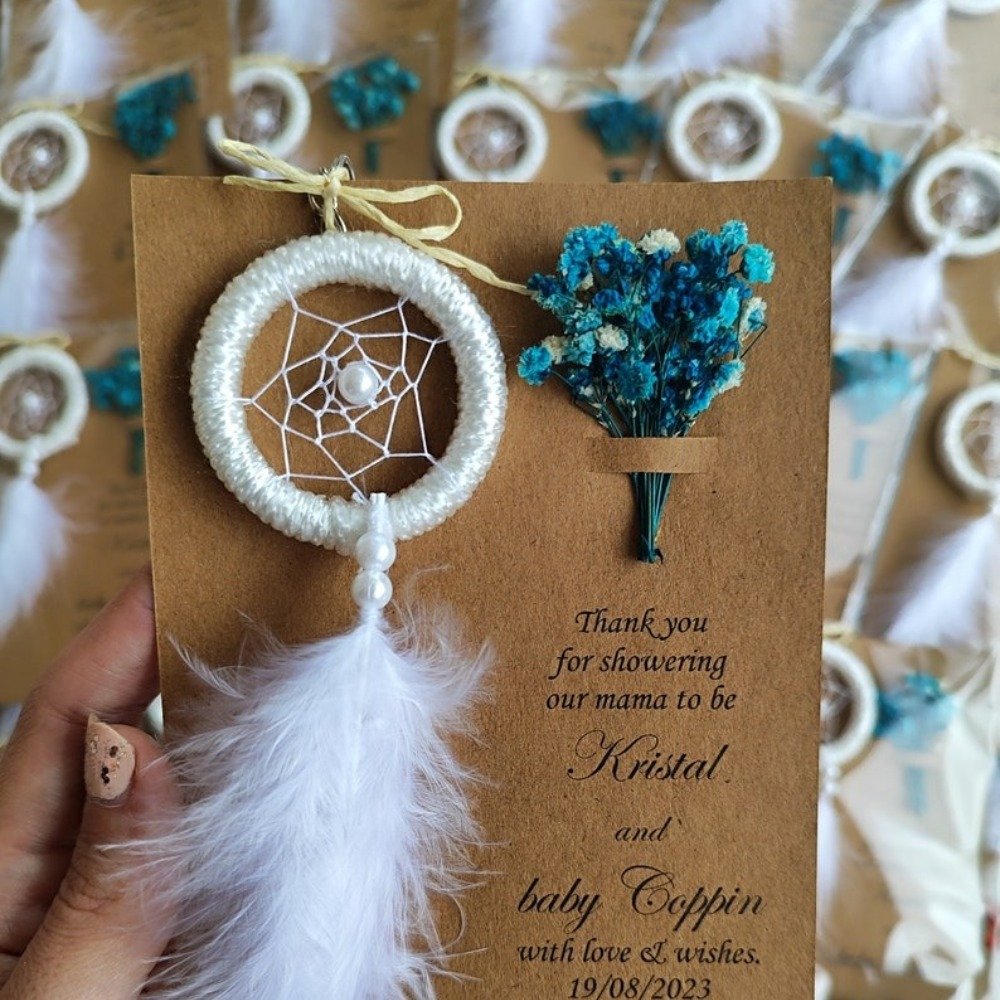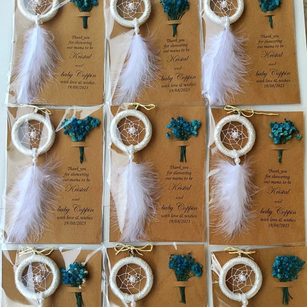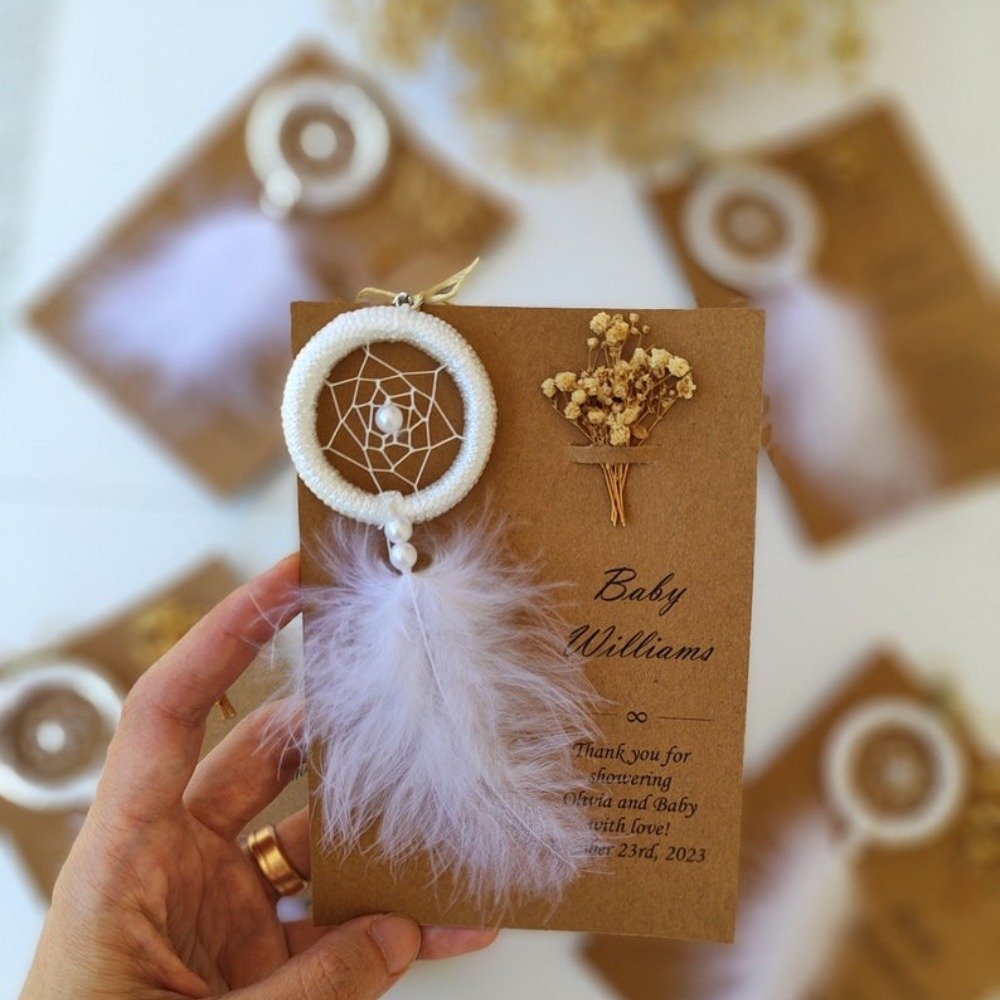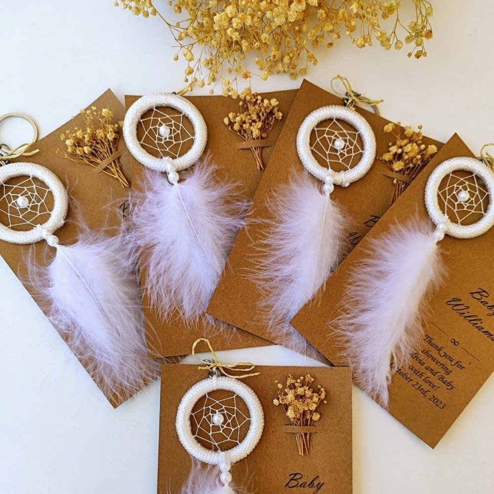 Boho & rustic weddings Bridal showers & baby showers Birthday & bachelorette parties Engagement & anniversary celebrations Sweet 16 & Quinceañera favors Baptism & christening gifts Graduation parties Corporate & volunteer appreciation gifts Teacher or nurse appreciation gifts Memorial & celebration of life ceremonies Church or community gatherings Wellness retreats & spiritual events Guest thank-you favors Neighbor & friend gifts Charity or fundraising events Meaning Behind the Dreamcatcher: Dreamcatchers are believed to protect from negativity and bring good energy — making them a symbolic and thoughtful gift for guests, newlyweds, or new parents. A beautiful ethnic-inspired favor, symbolizing protection, love, and positive energy — perfect for those who appreciate meaningful boho designs.