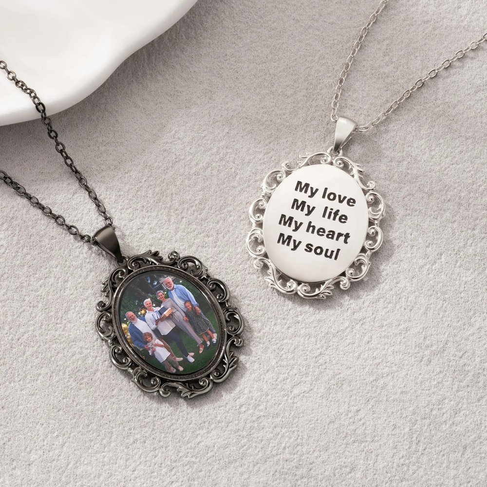 This necklace centers around a custom photo pendant, allowing you to carefully set a couple of portraits, family images, or precious moments inside. The back of the pendant can be engraved with text, blending visual memories with written sentiment to create a personal accessory that carries both commemorative meaning and individual style.