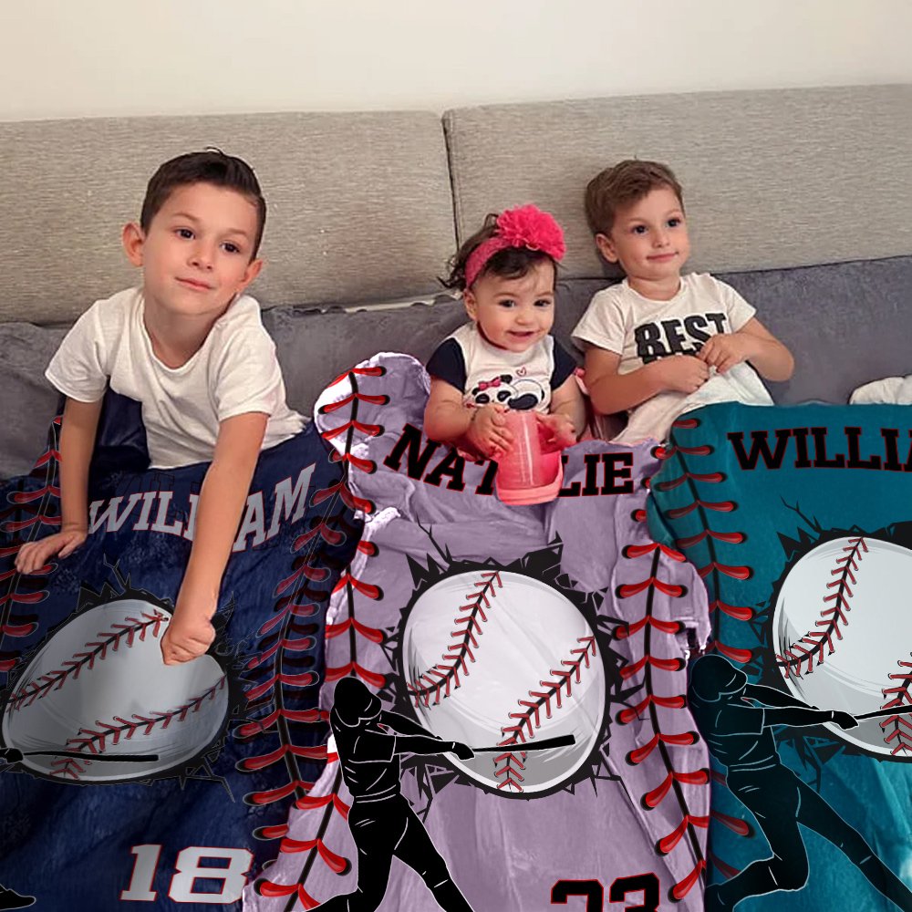 This cozy blanket features a bold baseball-themed design with classic red stitching and sporty graphics. Its playful and energetic style adds a fun touch to any room, making it perfect for young athletes and passionate fans.