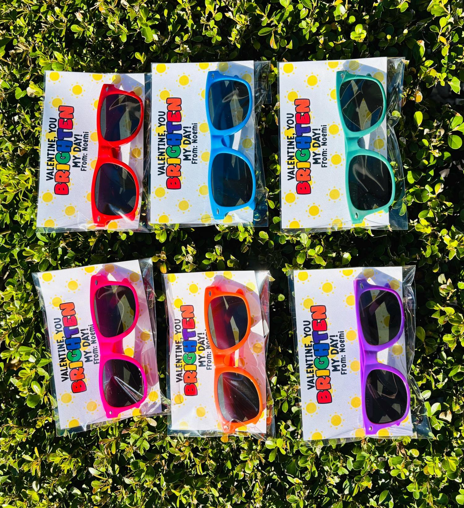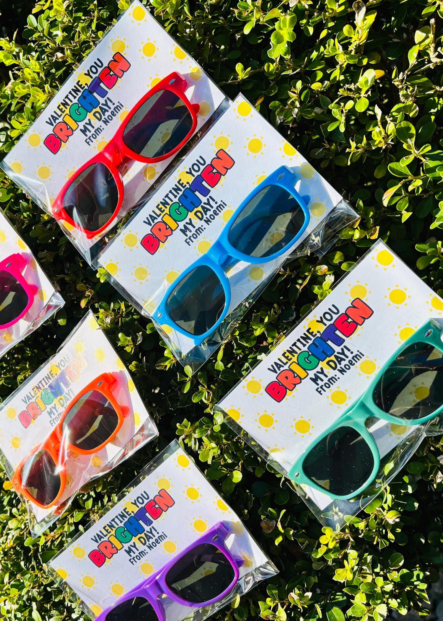 (Set of 2 Pcs)Personalized Brighten My Day Valentine's Day Colorful Sunglasses, Unique Classroom Party Favors for Kids/Boys/Girls