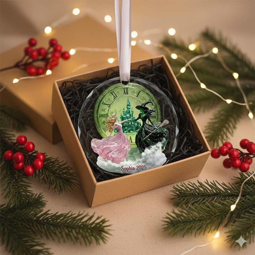 Celebrate the magic of the season with our wicked themed design ornament! Featuring a stunning design, this ornament is perfect for adding a touch of fantasy to your Christmas tree. Customize it with a name and year for a special keepsake.
