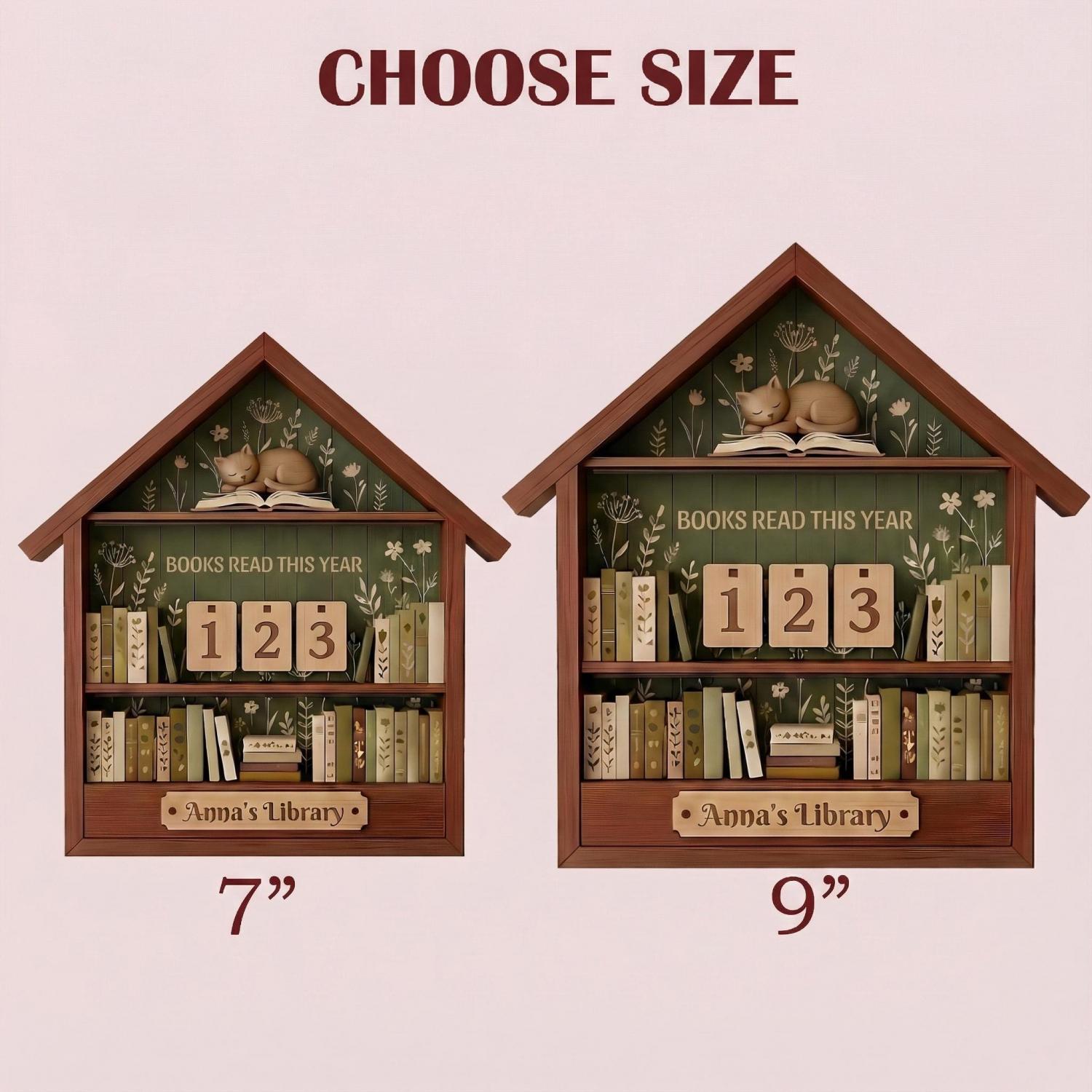 The Book Tracker is available in two sizes to suit different spaces: - 7 inches: A compact size, perfect for smaller spaces or as a personal gift. - 9 inches: A larger size, ideal for bigger spaces or those who want a more prominent piece in their reading area.