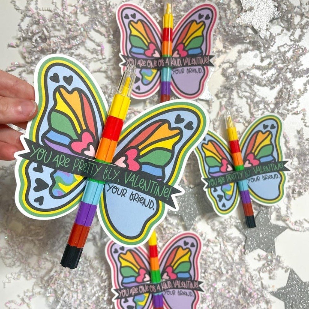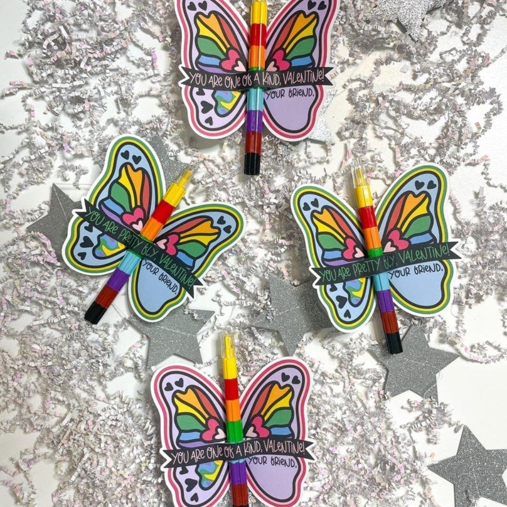 Make Valentine’s Day extra special with personalized rainbow butterfly crayons. Click “Add to Cart” now and give a gift that sparks creativity and kindness! 🌈💖