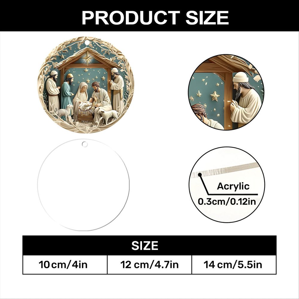 Crafted from high-quality acrylic, the detailed carving showcases the serene beauty of the nativity. Its stunning design adds a touch of elegance and joy to your Christmas tree.