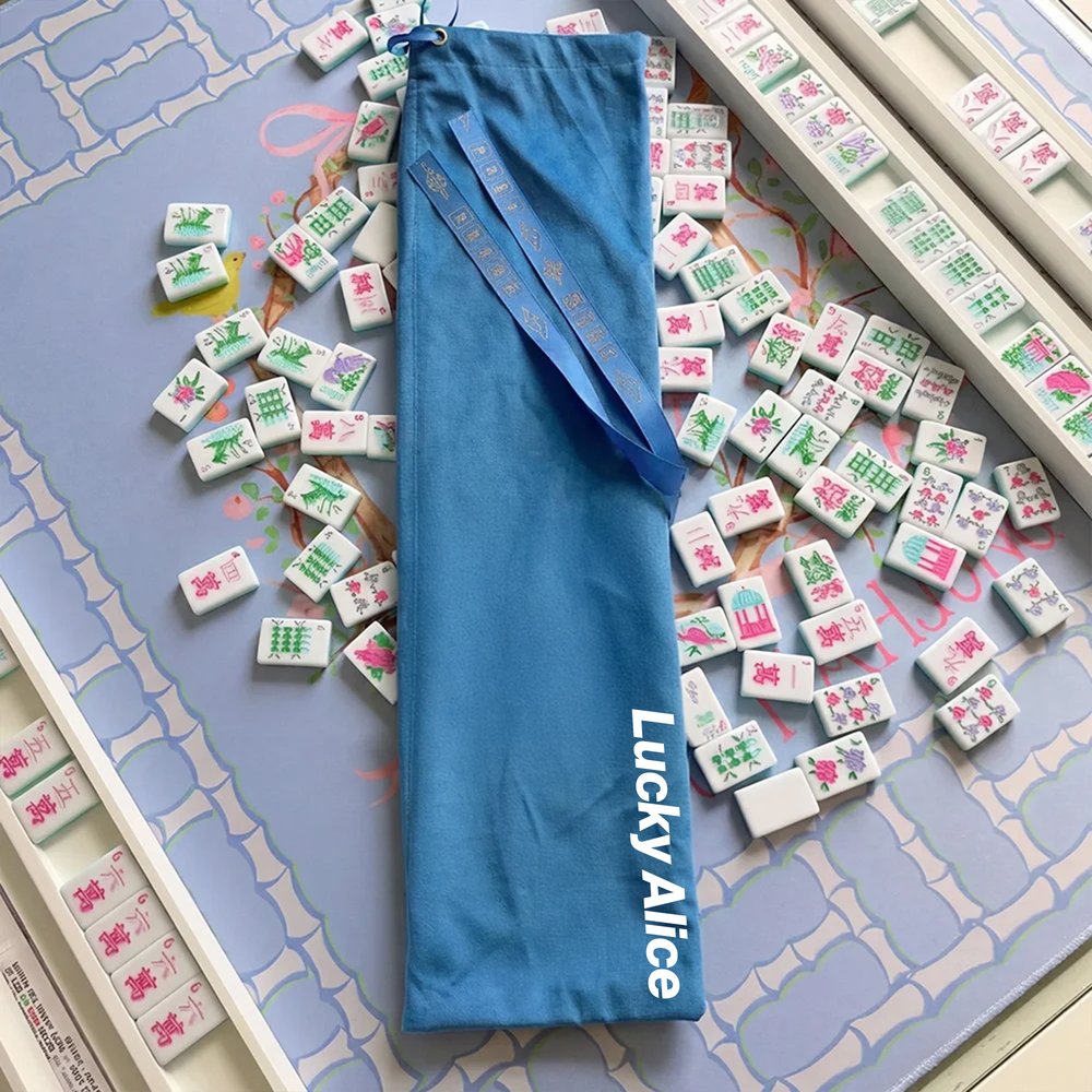Each bag is finished with a matching satin ribbon printed with delicate text, tying into a pretty bow to secure your racks. This charming detail elevates the pouch from a simple storage item to a stylish accessory that complements any mahjong table setting.