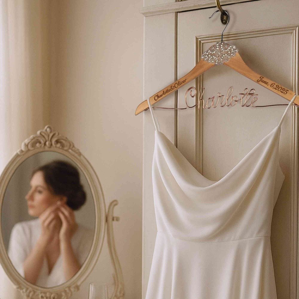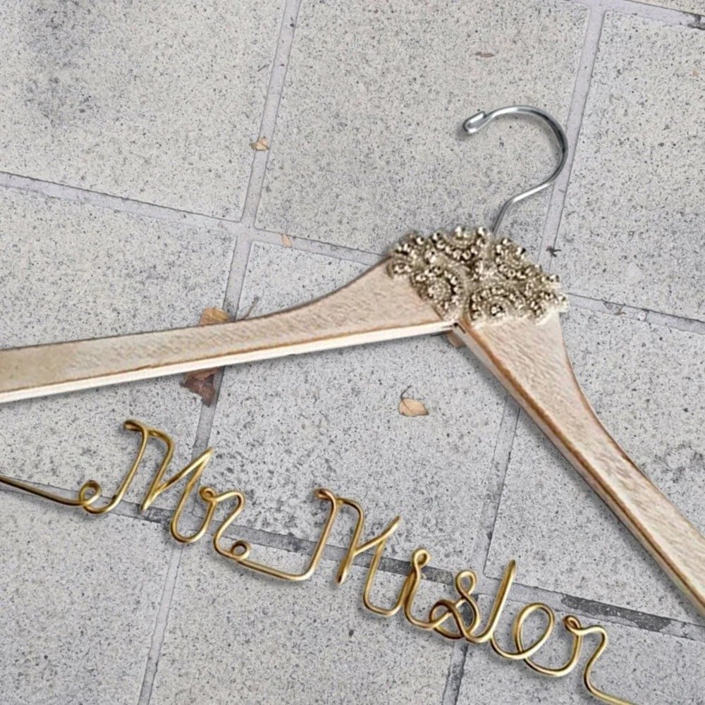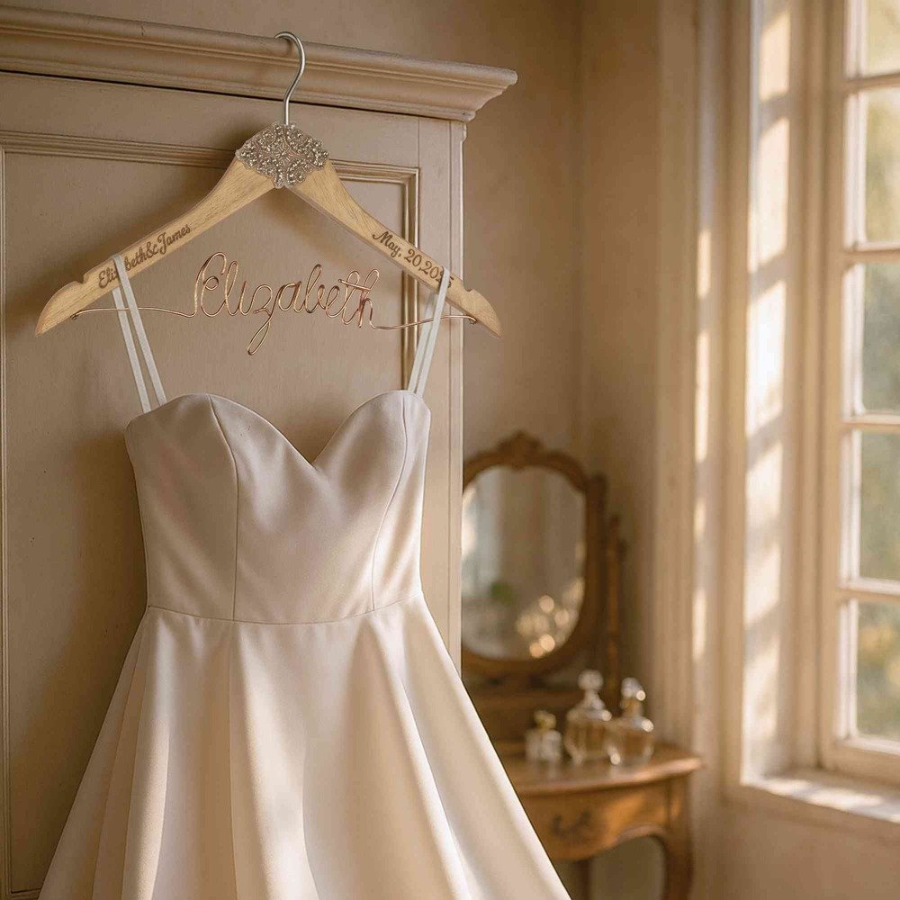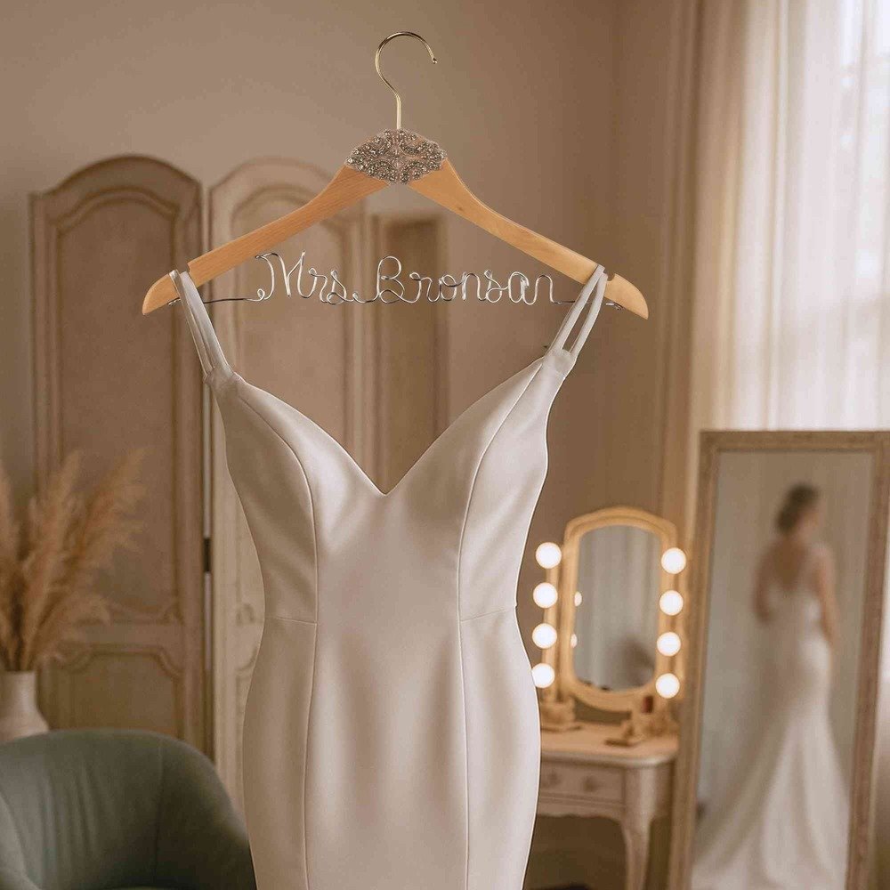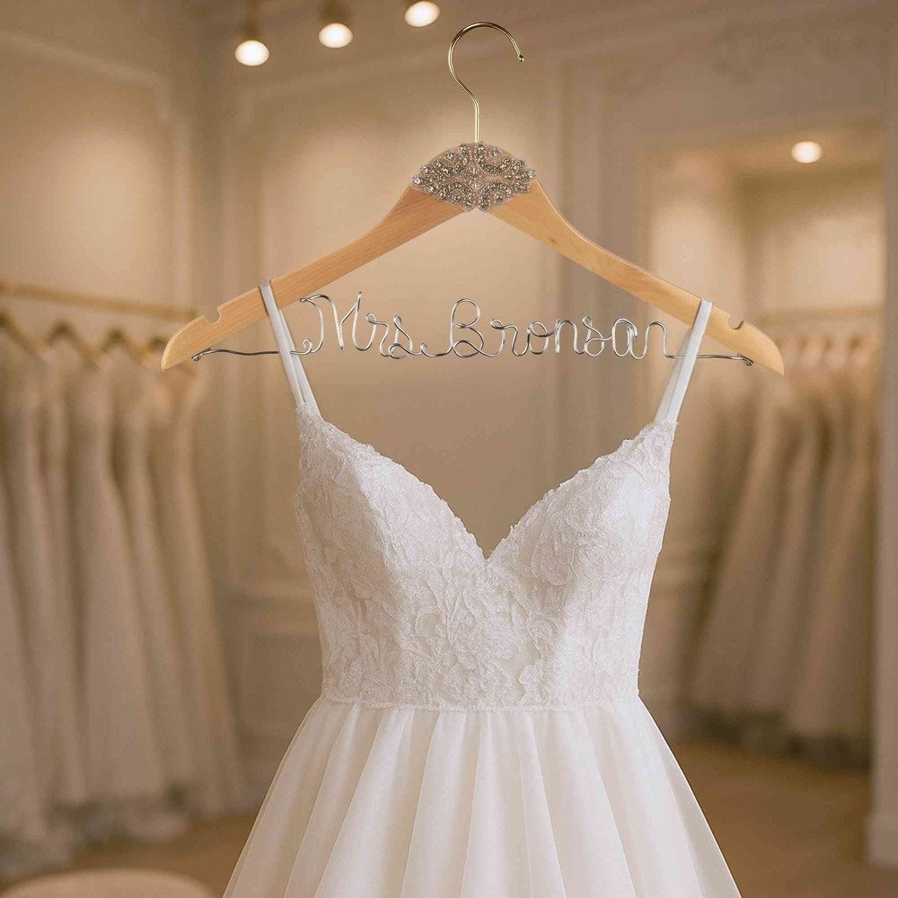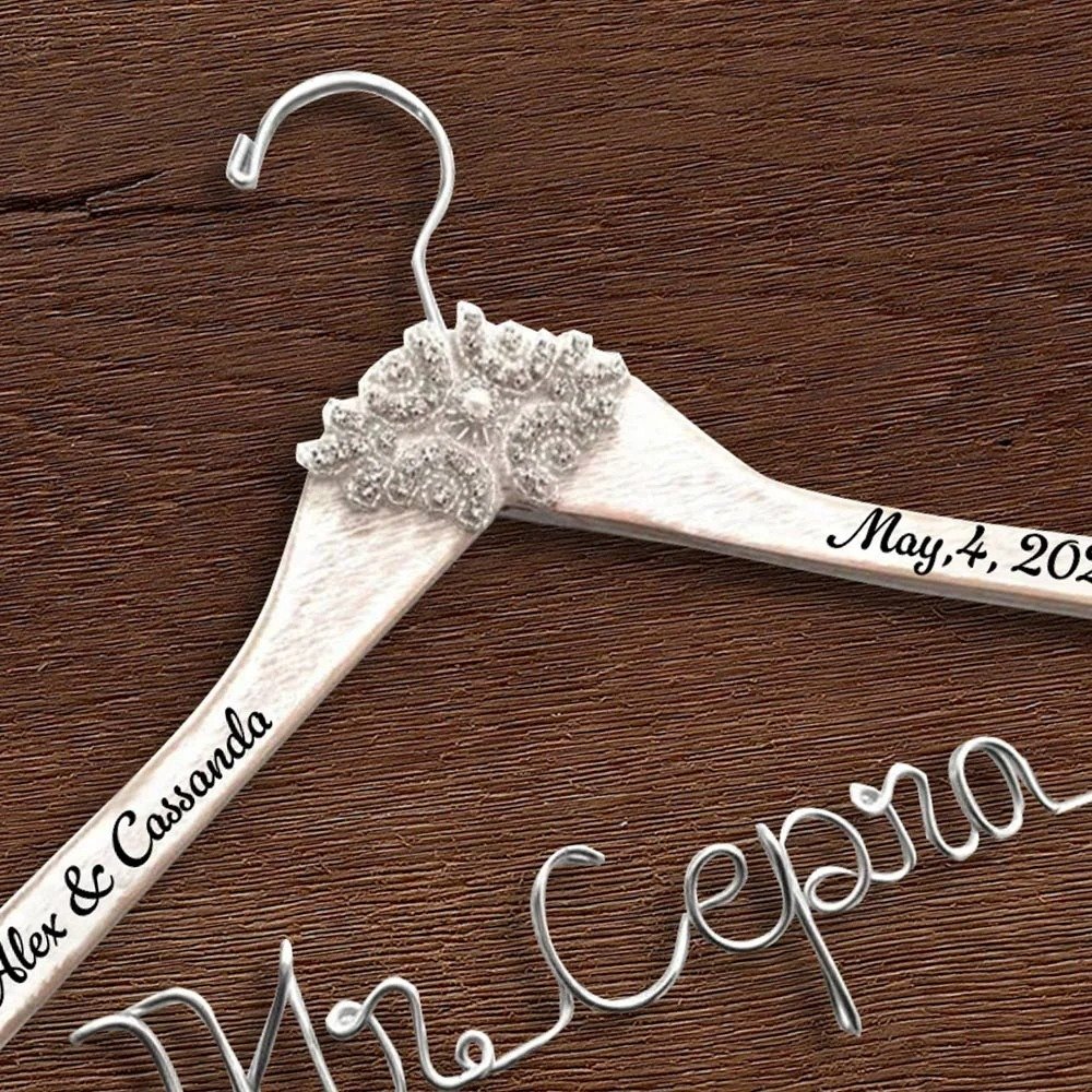 Looking for a special wedding gift? This personalized wedding dress hanger is the perfect choice for the bride, for her honeymoon, or for pre-wedding celebrations, surprising her and becoming an important part of her romantic memories.