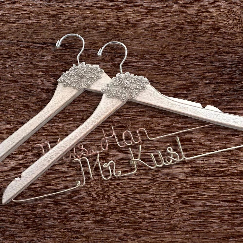 Each hanger can be customized with your name or a special date, ensuring it's a unique playful accessory. This distinctive gift will add more personality and emotion to your wedding.